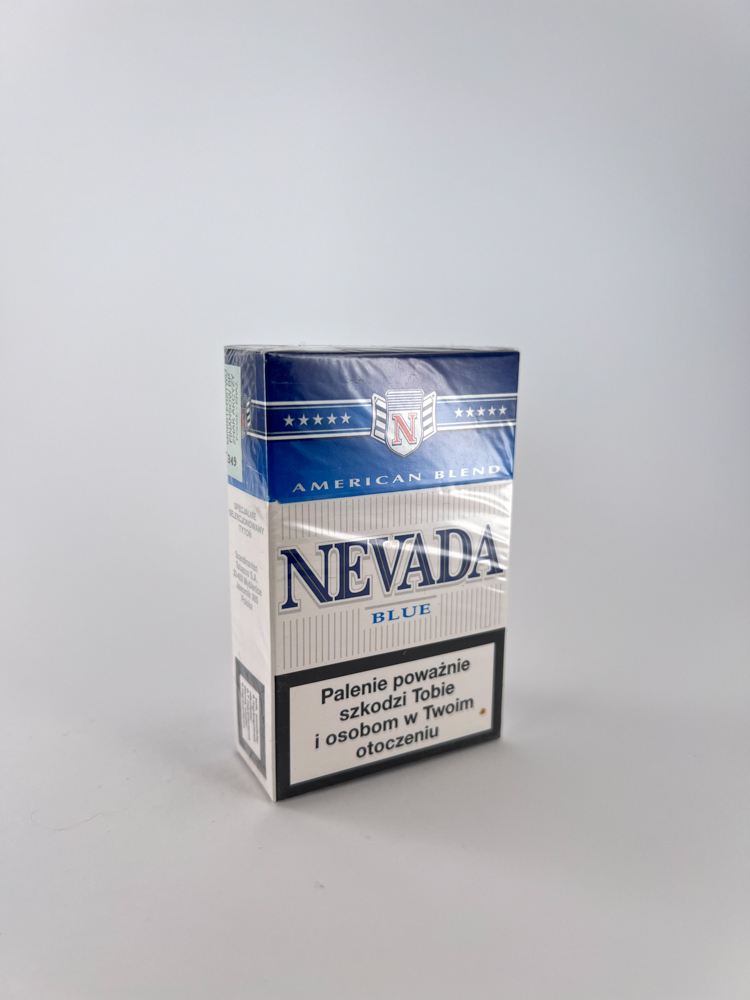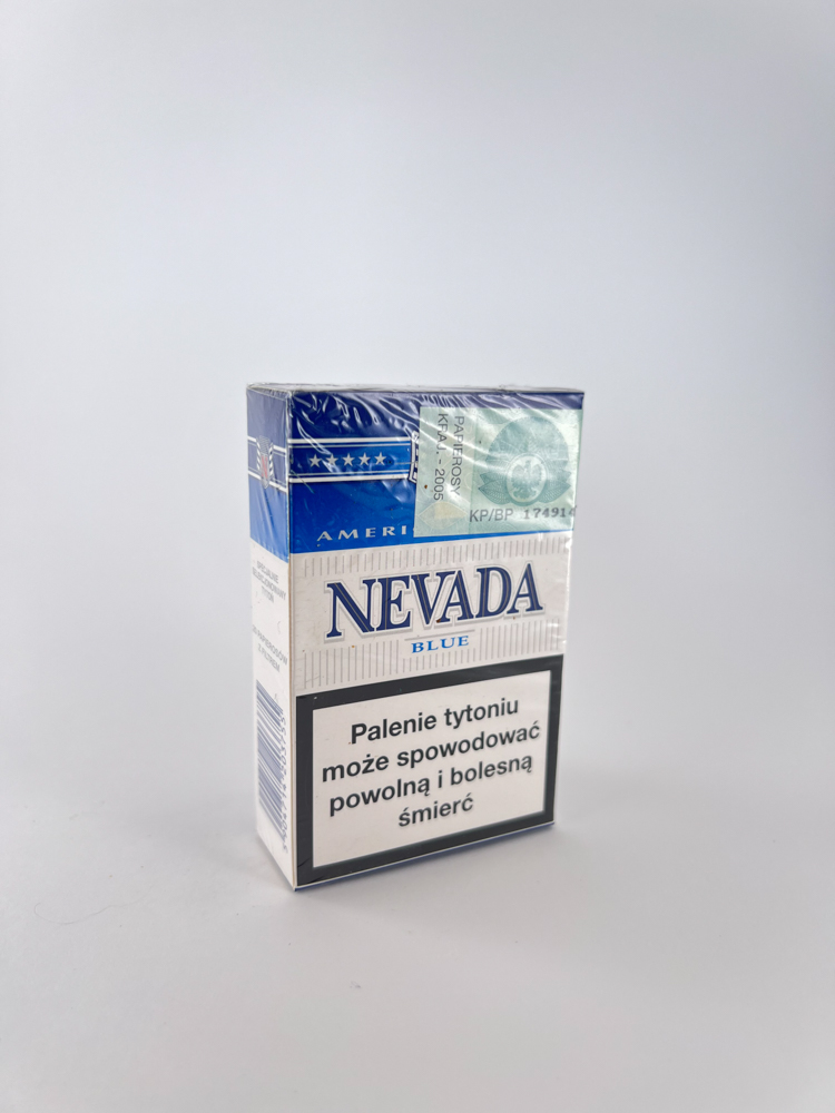 „Nevada Blue“ cigarečių pakelis iš Lenkijos vidaus rinkos, gamintas 2005 m., yra klasikinio amerikietiško stiliaus dizaino, su ryškiai mėlyna juosta viršuje ir šviesiu fonu apačioje. Dizainas atitinka „American Blend“ įvaizdį – išraiškingas šriftas, žvaigždžių simbolika ir herbas su „N“ raide centre. Ant pakuotės nurodyti įspėjimai lenkų kalba apie rūkymo žalą, o šone – informacija apie gamintoją. Šis pakelis buvo gaminamas Zakłady Tytoniowe w Lublinie S.A., viename pagrindinių Lenkijos tabako fabrikų.