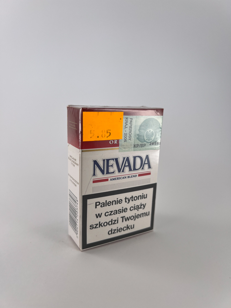 „Nevada cigarettes were produced in Poland as a cost-effective product for the local market. Similar style packs were common around 2000-2010, after which their design and production changed significantly.