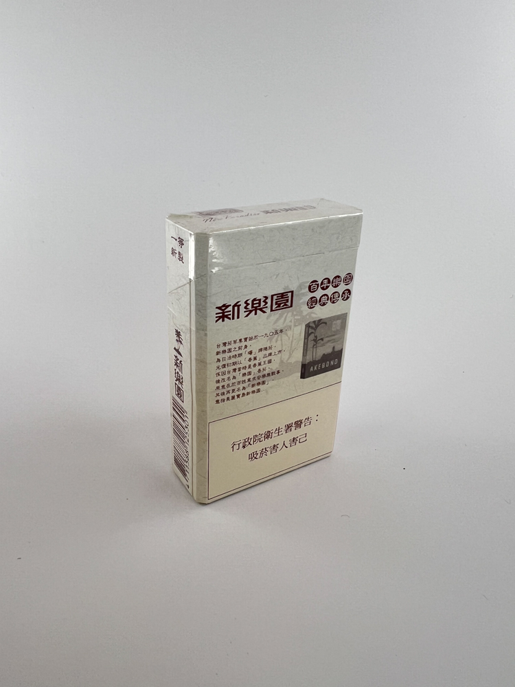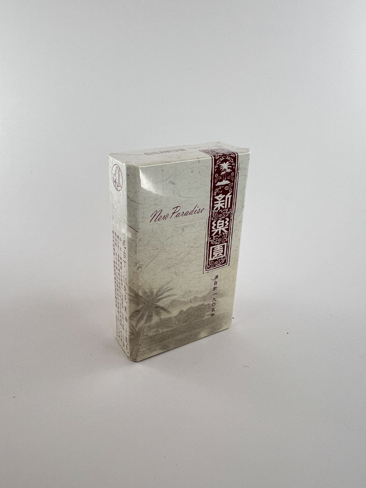 Stilingas baltos–smėlinės spalvos paketas su tradiciniais kinų ženklais („新樂園“ – „New Paradise“) ir anglišku užrašu „New Paradise“ kartu su „Charcoal Special Filter“. Minimali estetika – tekstūra primena natūralų popierių. Dizainas urbanistinis ir elegantiškas.