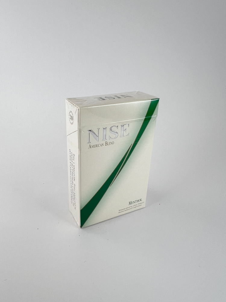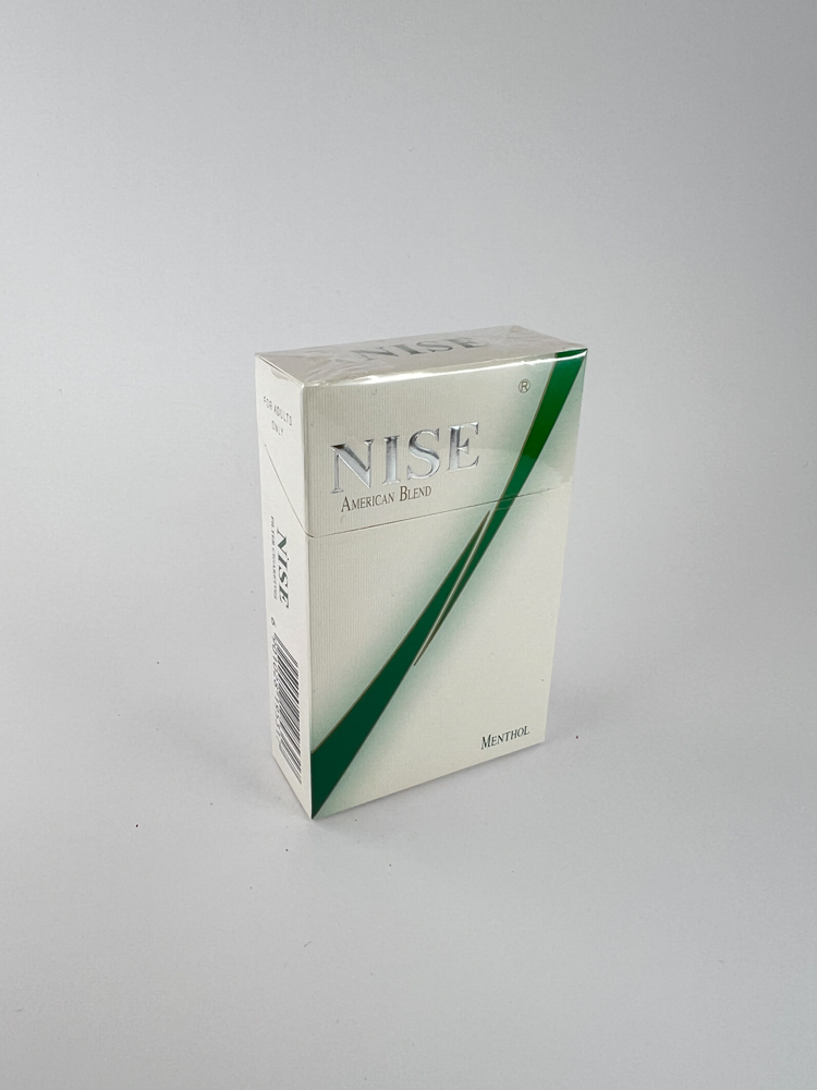 The NISE Menthol cigarette pack has a minimalist design – a light background with a greenish diagonal and a silver shiny inscription „NISE“. Below it is marked „American Blend“, and in the lower part – the inscription „Menthol“, indicating the flavor. According to the inscription on the pack, the manufacturer is VINA TABACCO CORPORATION, located in Ho Chi Minh City, Vietnam. Intended for export - this is evidenced by English inscriptions and the instruction "FOR ADULTS ONLY". The package is in the original cellophane, in excellent condition.
