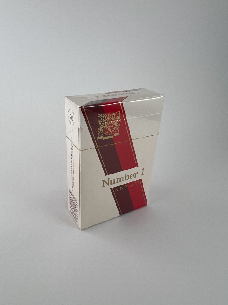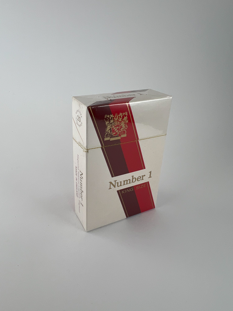 The Number 1 King Size cigarette pack has an elegant and classic design – dominated by white with vertical stripes of red shades and a gold emblem. This pack reflects the European commercial style of the time and the desire to position the product as a higher-class product. Due to the generic name „Number 1“ and the indication „King Size“, this pack was oriented towards the international or at least regional distribution market. Due to the modest information on the pack and the low awareness of the manufacturer, it is difficult to accurately identify the source.