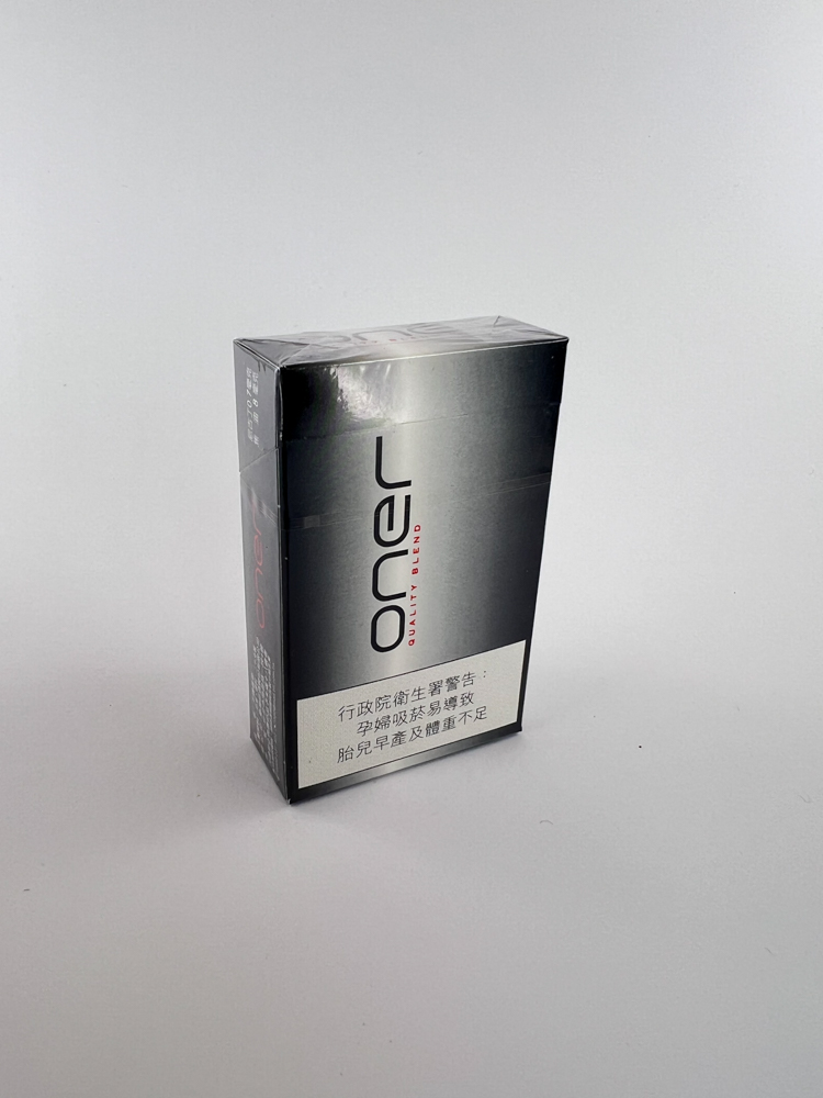 Šis „Oner Quality Blend“ cigarečių pakelis pasižymi moderniu ir minimalistiniu dizainu – dominuoja metalinė sidabrinė spalva su juodais bei raudonais akcentais. Pakelio viršuje pažymėta kaina – 35 juaniai (N.T. Taivano doleriai). Įspėjimai apie rūkymo žalą pateikti tradiciniais kinų rašmenimis, o tai rodo, kad šis leidimas skirtas Taivano rinkai. Dizainas skirtas perteikti kokybę ir solidumą, išlaikant šiuolaikinį stilių.