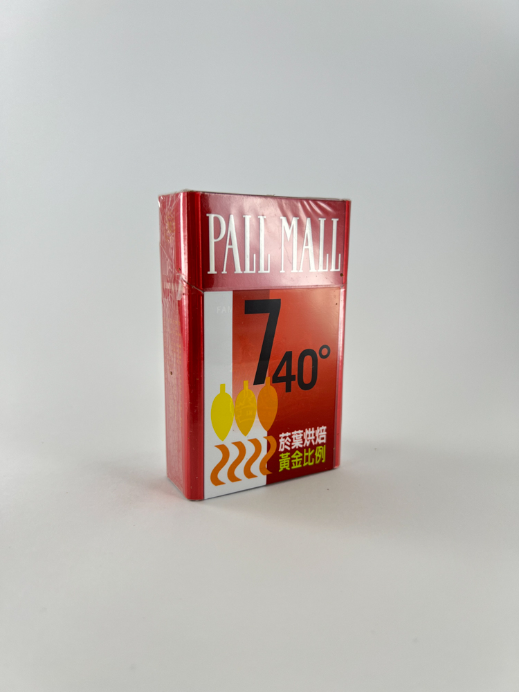 This is an atypical Pall Mall release for the Asian market – the specific design refers to the „7-day 40°C drying technology“, which is highlighted on both the front and back of the pack. The front is dominated by a striking „7/40°“ logo, along with three stylized tobacco leaves and the symbolic phrase „golden proportion“ (黄金发公). This makes it clear that the product is positioned as technologically exclusive and of higher quality.