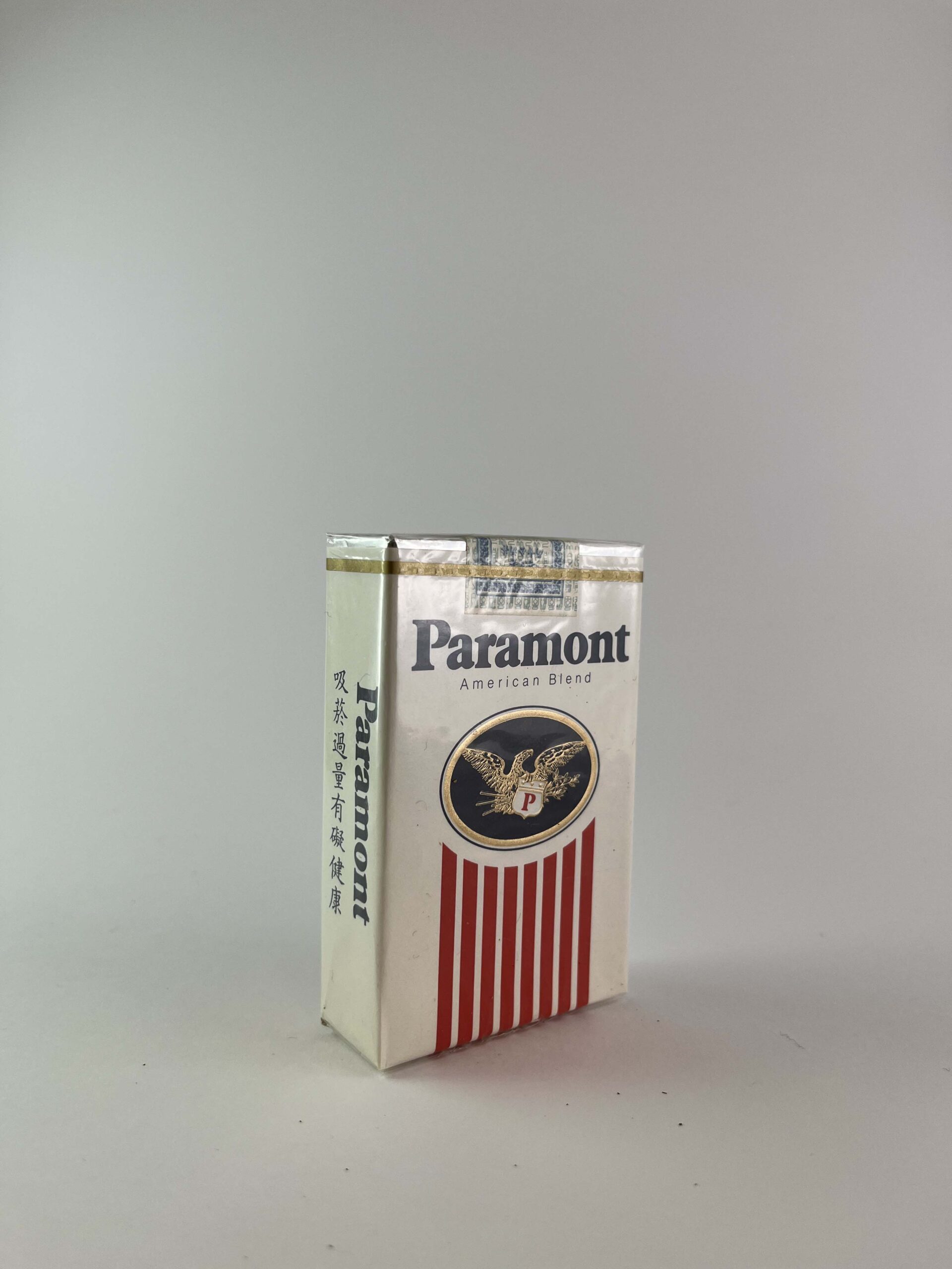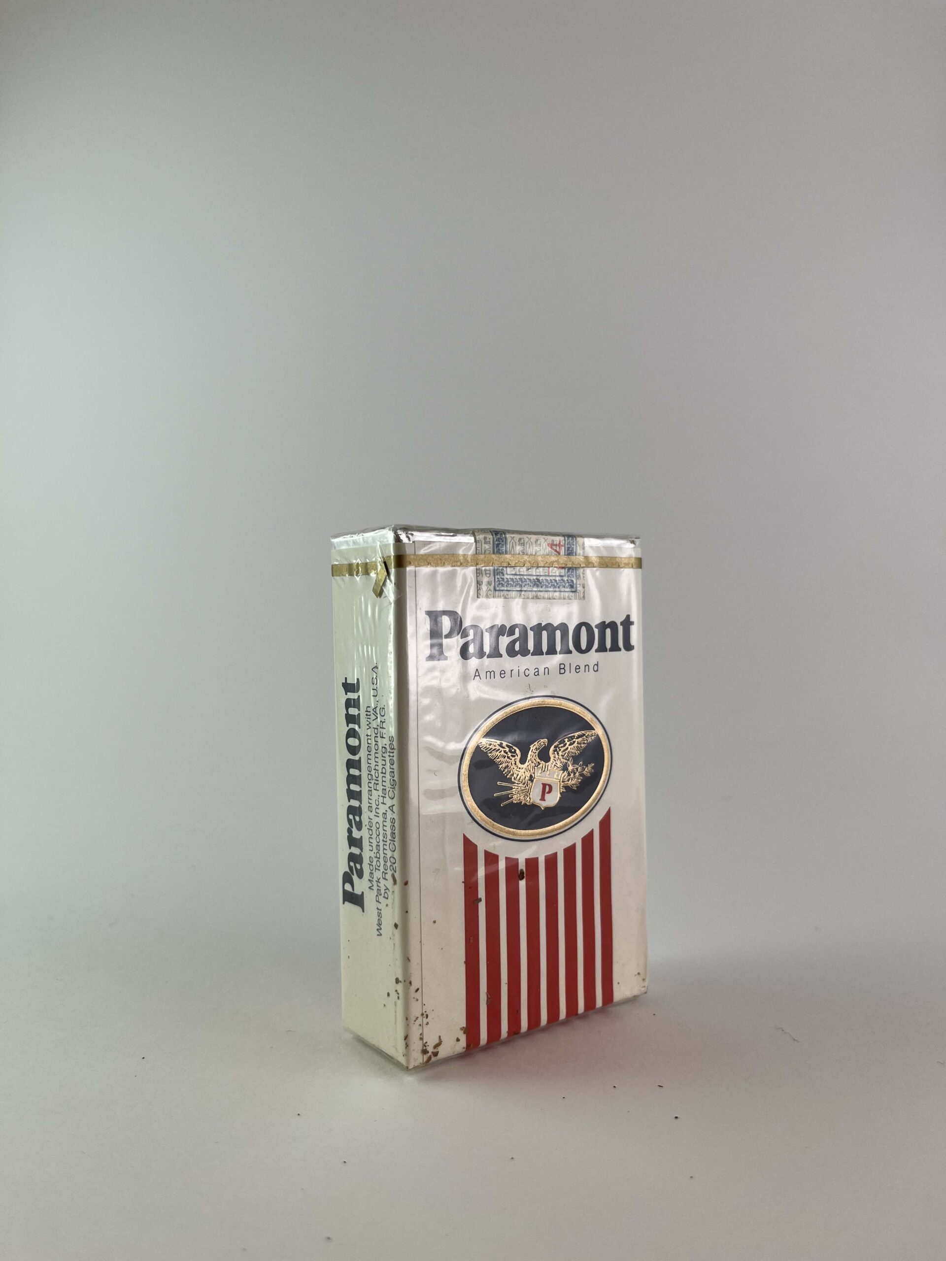 Description: This Paramount cigarette pack features a simple and distinctive design with the US flag and eagle symbolism, reminiscent of American origins. The pack is finished in white with red stripes at the bottom and an elegant eagle logo at the top. The text on the pack warns about the health risks of smoking, emphasizing the risks of smoking.