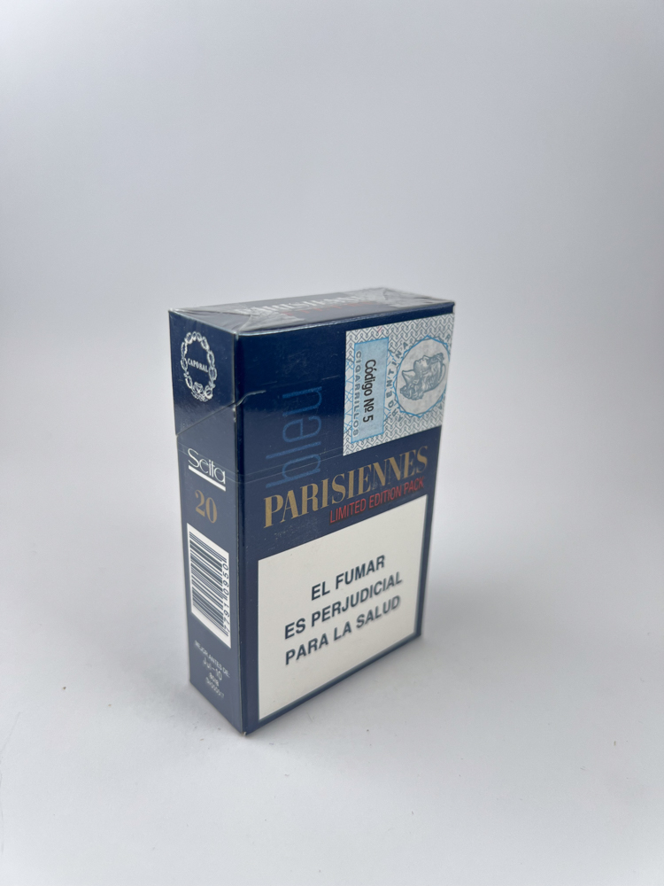– Vertikaliai, kairėje, – auksinis užrašas “PARISIENNES”, o šone – numeracija „20“.