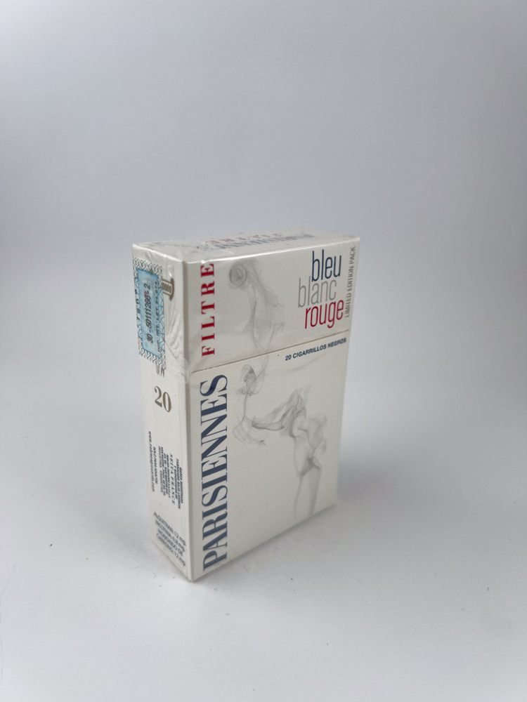 Vertical inscription on the left Parisians silver color, written in small letters at the top blue white red logo.