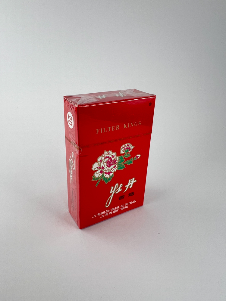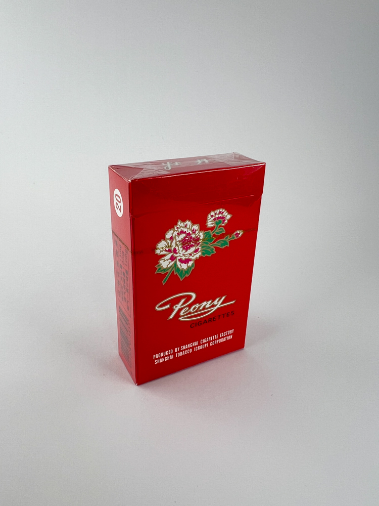 The Peony (牡丹) cigarette pack is one of the most iconic examples of classical Chinese design – a bright red background with a peony in the center. peony) – considered a symbol of honor, wealth and prestige in China. The pack was created at the Shanghai Tobacco Group factory and is intended for the domestic market. On one side is the English version „Peony Cigarettes“, on the other – Chinese inscriptions with the tag „Filter Kings“.