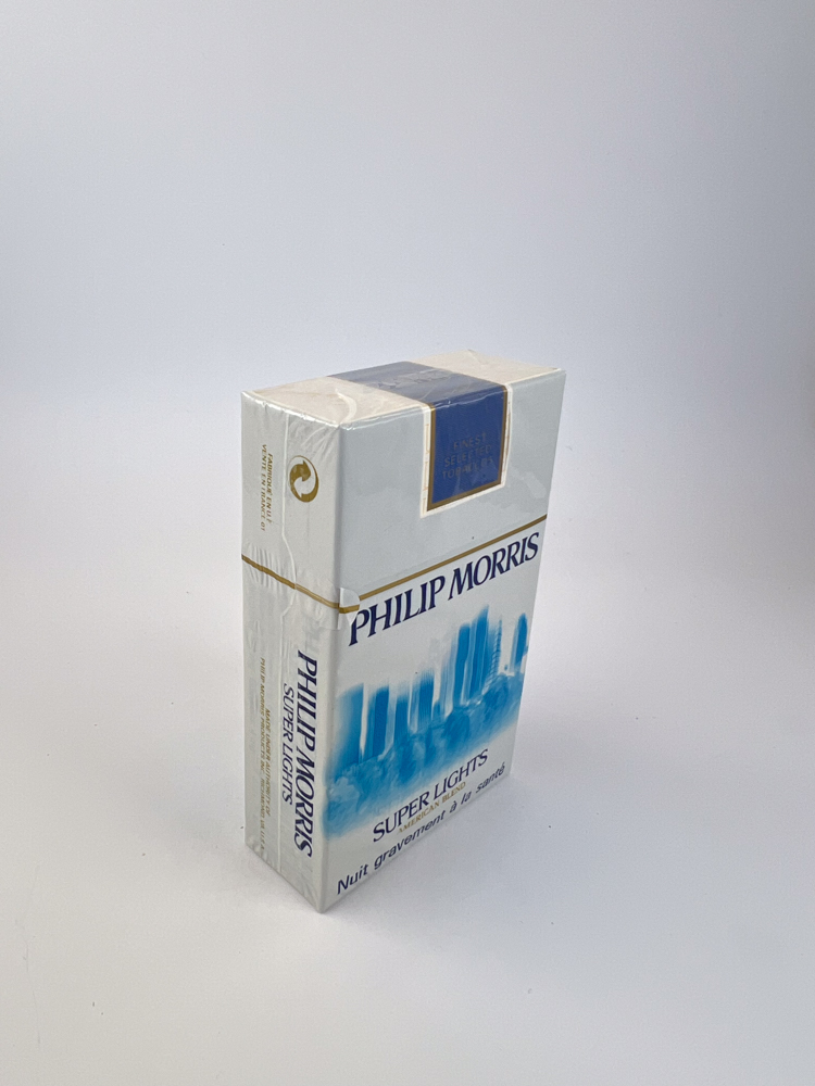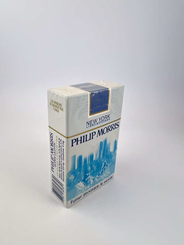 „Philip Morris Super Lights - New York Collection“ – is a limited edition of the „City Edition“ collection, which featured various cities around the world (New York, Paris, London, Rome). This specific version, dedicated to For the French market, stands out New York City Skyline image in blue tones, symbolizing a "modern, urban lifestyle.".