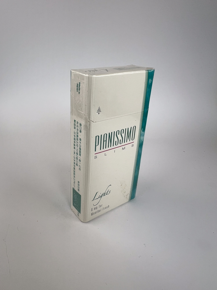 „Pianissimo Slims Lights“ – klasikinis japonų tabako pramonės produktas, sukurtas Japan Tobacco Inc. kaip moteriškų, lengvų cigarečių linijos dalis. Šis prekės ženklas buvo pozicionuojamas kaip premium lifestyle gaminys, akcentuojantis švarą, subtilumą ir minimalistinę estetiką – būdingą Japonijos dizaino filosofijai.