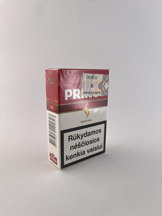 Šis „Prince Original“ cigarečių pakelis pasižymi klasikiniu ir lengvai atpažįstamu dizainu, kuriame dominuoja raudona ir balta spalvos. Viršutinėje dalyje išryškintas „Prince“ logotipas su karūnos simboliu, o centre – stilizuota liepsna, būdinga šio prekės ženklo vizualinei linijai. Dizainas paprastas, bet solidus, atspindintis tradicinį „full flavor“ segmento produktą. Ant pakelio pateikti latviški sveikatos įspėjimai bei Latvijos akcizo ženklas, rodantys, kad šis variantas skirtas Latvijos rinkai. Bendras įspūdis – klasikinis, stabilus ir vienas pagrindinių šios linijos modelių.