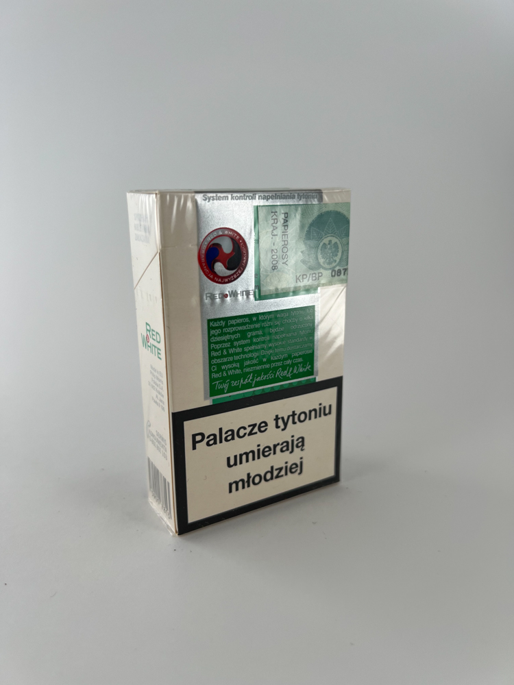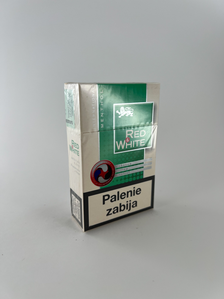 „Red & White Menthol“ – tai viena iš mažo kainų segmento cigarečių rūšių, gamintų Rytų Europos rinkai. Šio pakelio dizainas žymi mentolio skonį, pavaizduotas žalias fonas su baltu liūtu bei ženklu „Red & White International Menthol“. Galinėje pusėje pateiktas informacinis tekstas apie sistemą, užtikrinančią tabako užpildymo kontrolę, kas tuo metu buvo rinkodaros akcentas. Pakelis neišpakuotas, su Lenkijos 2008 m. akcizo ženklu.