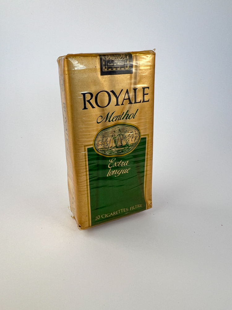 Historical data and popularity: „Royale cigarettes were made in France and had a certain prestige image. The menthol variants were less common, and the extra longue was a very specific and limited format, so these packs are valued much higher on the collector's market than the standard ones.