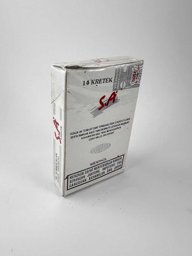 Baltos spalvos pakelis su minimalistiniu dizainu, kurio centre raudonomis raidėmis parašytas logotipas „S.A“. Po juo pabrėžta, kad tai „Menthol“ cigaretės. Priekyje ir šonuose matomas užrašas „14 Kretek Filter“, nurodantis, kad viduje yra 14 kretekų (tradicinių indonezietiškų gvazdikėlių cigarečių su filtru). Ant galinės pusės pateiktas trumpas aprašymas apie gamybą – naudojamas aukštos kokybės tabakas ir gvazdikėliai, bei specialus prieskonių padažas, suteikiantis išskirtinį skonį. Pakelis dar užplombuotas Indonezijos akcizo banderole (kaina – 1.050 rupijų).