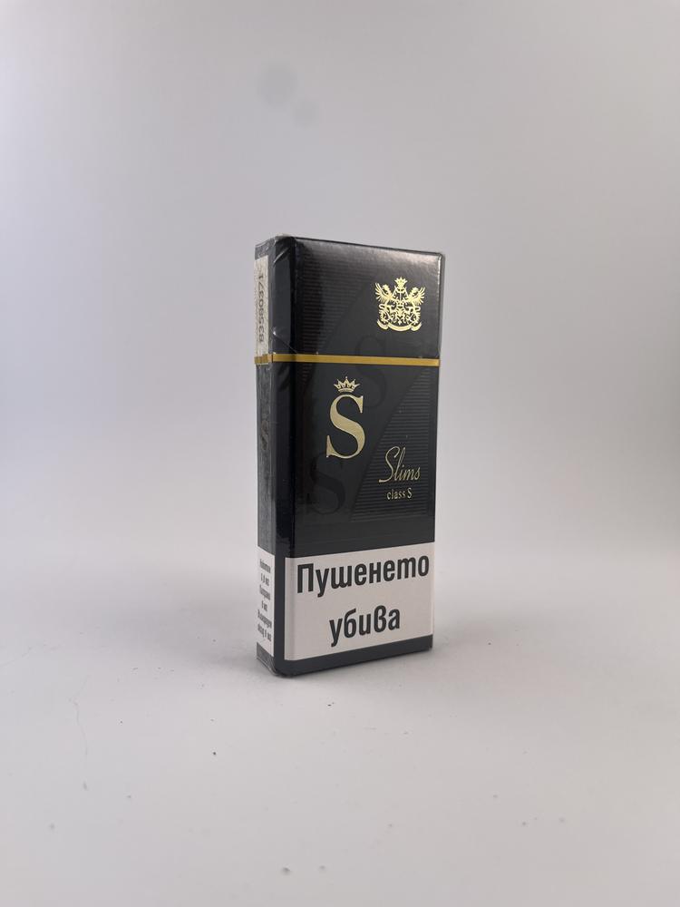 The package is dominated by a capital letter. S with a crown on top – this is the main symbol of the brand, conveying sophistication and elegance. In the upper part – a golden coat of arms, and in the lower part – the name Slims class S in a classic font.