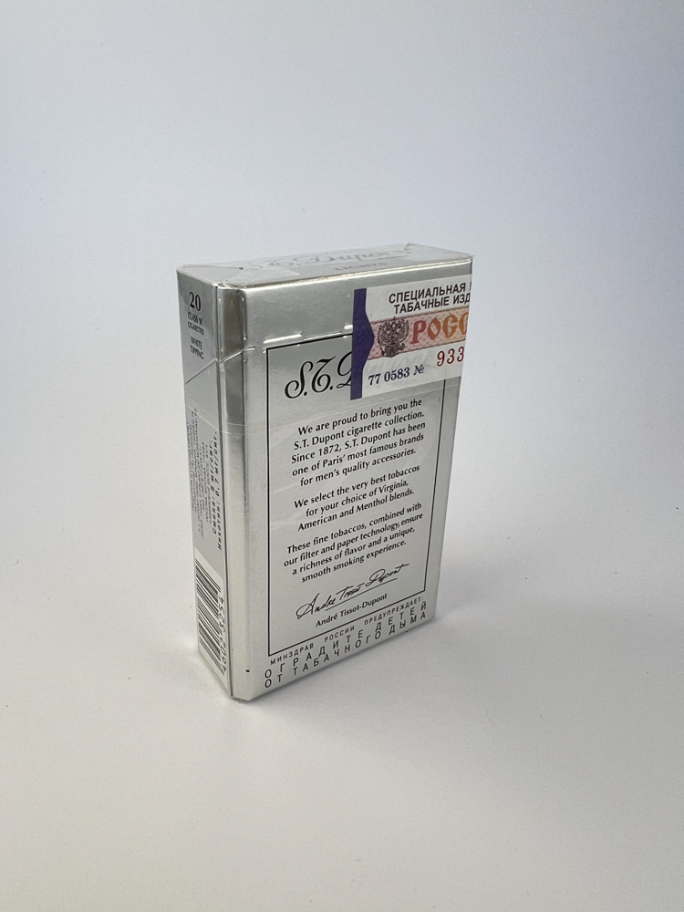 • Historical data and popularity: „S.T. Dupont is best known for its high-end lighters, pens, and luxury accessories. The cigarette line was a limited-edition product, mostly appearing in Eastern European and Asian markets. Due to their low circulation, collectors value these packs as a niche but high-end item.