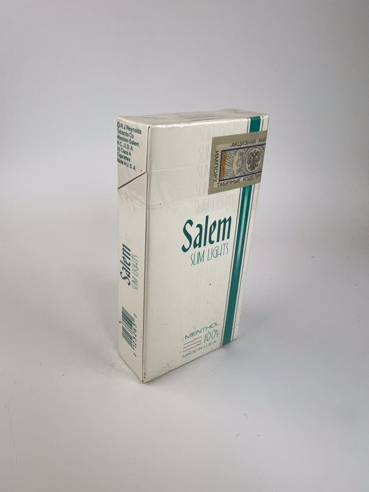 Collectible value: Average - higher. This model is valued for the rare combination of American production and Russian import excise stamp, which gives the item additional historical value. Such Salem Slim Lights soft packs are becoming increasingly rare in excellent condition, and are therefore considered quite sought after by collectors.