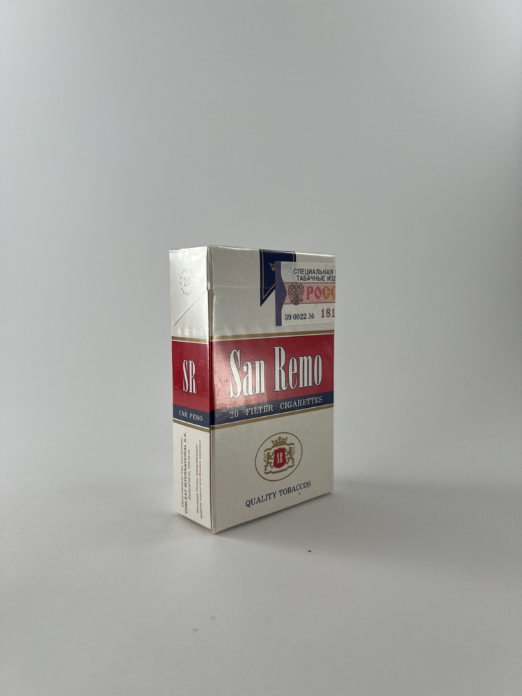 Historical data and popularity: Šio ženklo cigaretės buvo orientuotos į žemesnės–vidutinės kainos segmentą. Nežiūrint į pretenzingą pavadinimą ir europietišką stilistiką, San Remo netapo plačiai paplitusiu ženklu, tačiau jo dizainas bei reta išlikimo tikimybė paverčia jį tinkamu kolekcijoms, dokumentuojančioms trumpalaikius ar išnykusius ženklus Rusijos tabako rinkoje.