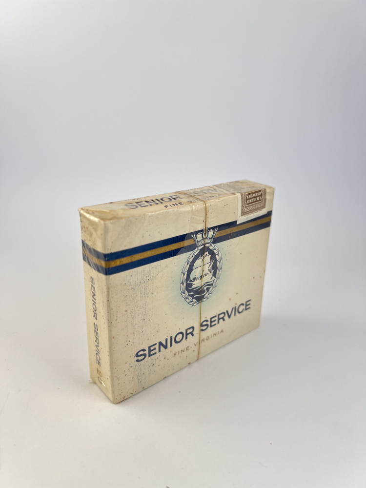 • Collectible value: High. This rare export Senior Service edition, made in Italy, and such variants are extremely rare. Because authentic print design, original cellophane and excise tape This pack is considered a valuable object of collectible tobacco history.