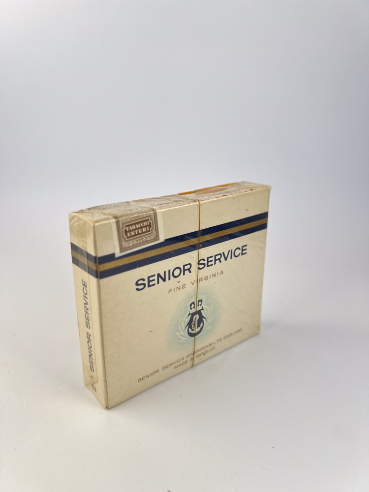 „Senior Service is a classic British cigarette brand created Gallaher Ltd. back in the early 20th century. This particular edition – export version, marked with the inscription “"Senior Service (Overseas) to England - Made in Benevento"”, which indicates that production was carried out In Italy, in the city of Benevento, intended for export to the British colonies and southern European markets.