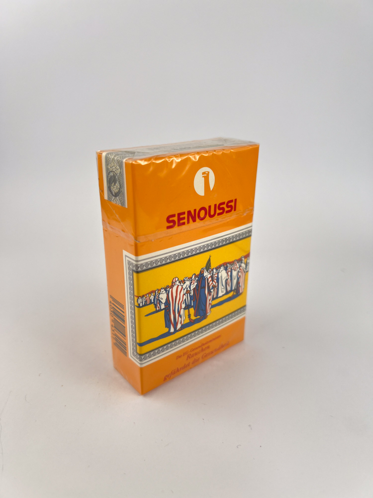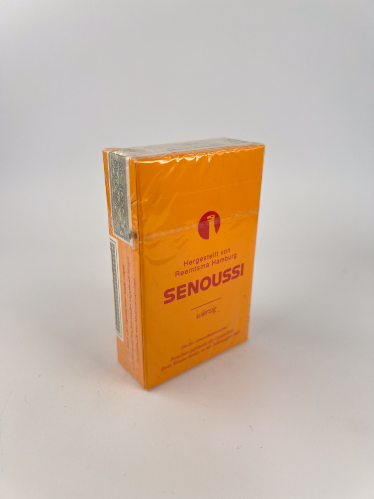 Collectible value: high – Senoussi is considered a cult Reemtsma product with a strong design heritage and a highly recognizable aesthetic. This type of pack, especially with the original film, is regarded as an example of classic German tobacco culture.