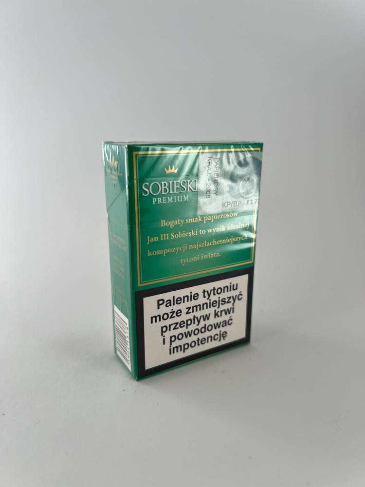 „Sobieski Premium“ – tai lenkiškas cigarečių ženklas, pavadintas pagal istorinę figūrą – karalių Joną III Sobieskį. Pakelis išsiskiria tamsiai žalia spalva, auksiniu apvadu ir minimalistiniu dizainu, kuris perteikia prestižo įvaizdį. Priekinėje pusėje matomas karūnos simbolis bei išskirtinė auksinė parašas „Jan III“. Galinėje pusėje tekstas pabrėžia, kad tai „kompozicija iš tauriausių pasaulio tabakų“. Tai produktas, skirtas vidaus rinkai, su visais užrašais lenkų kalba.