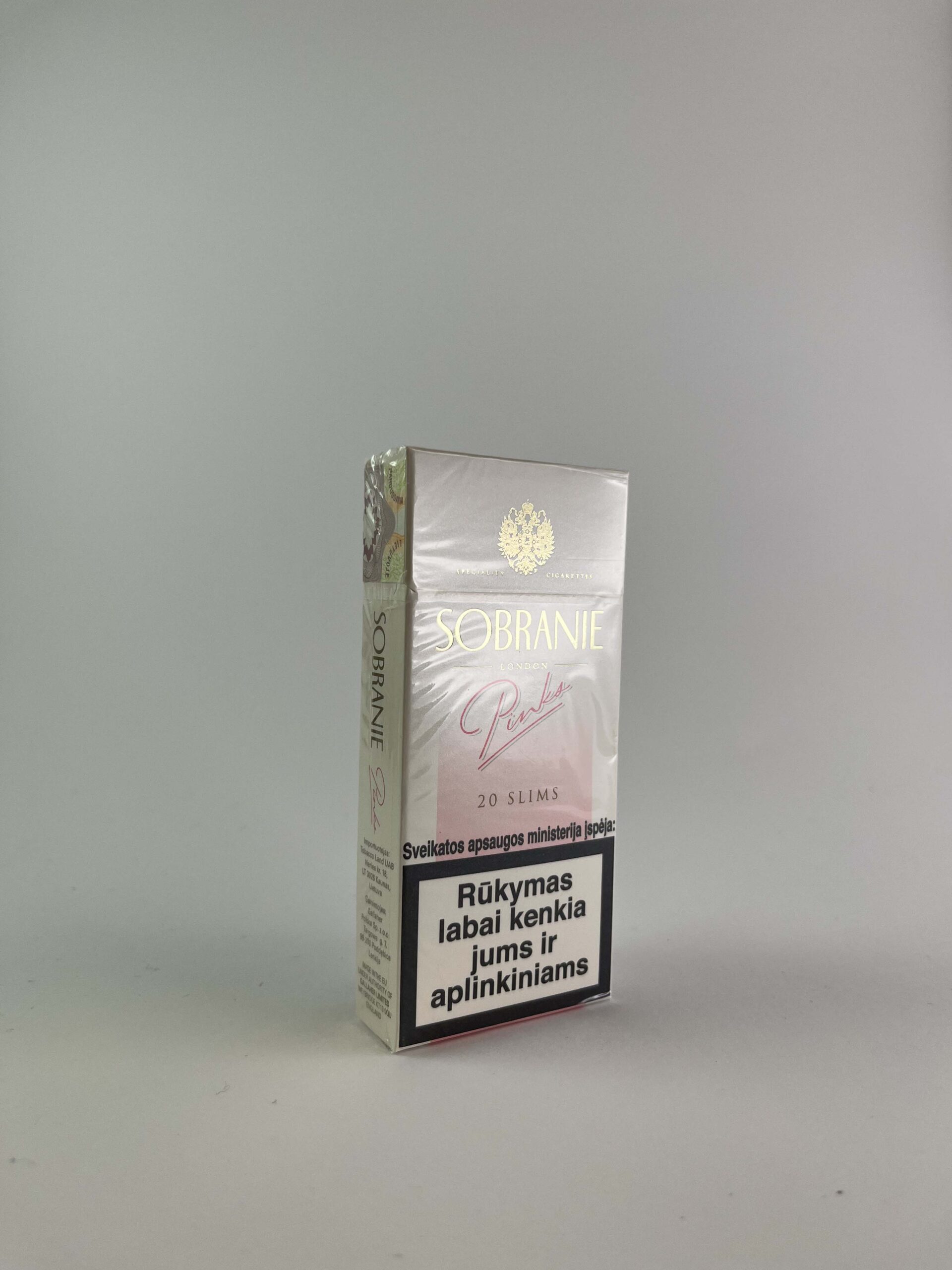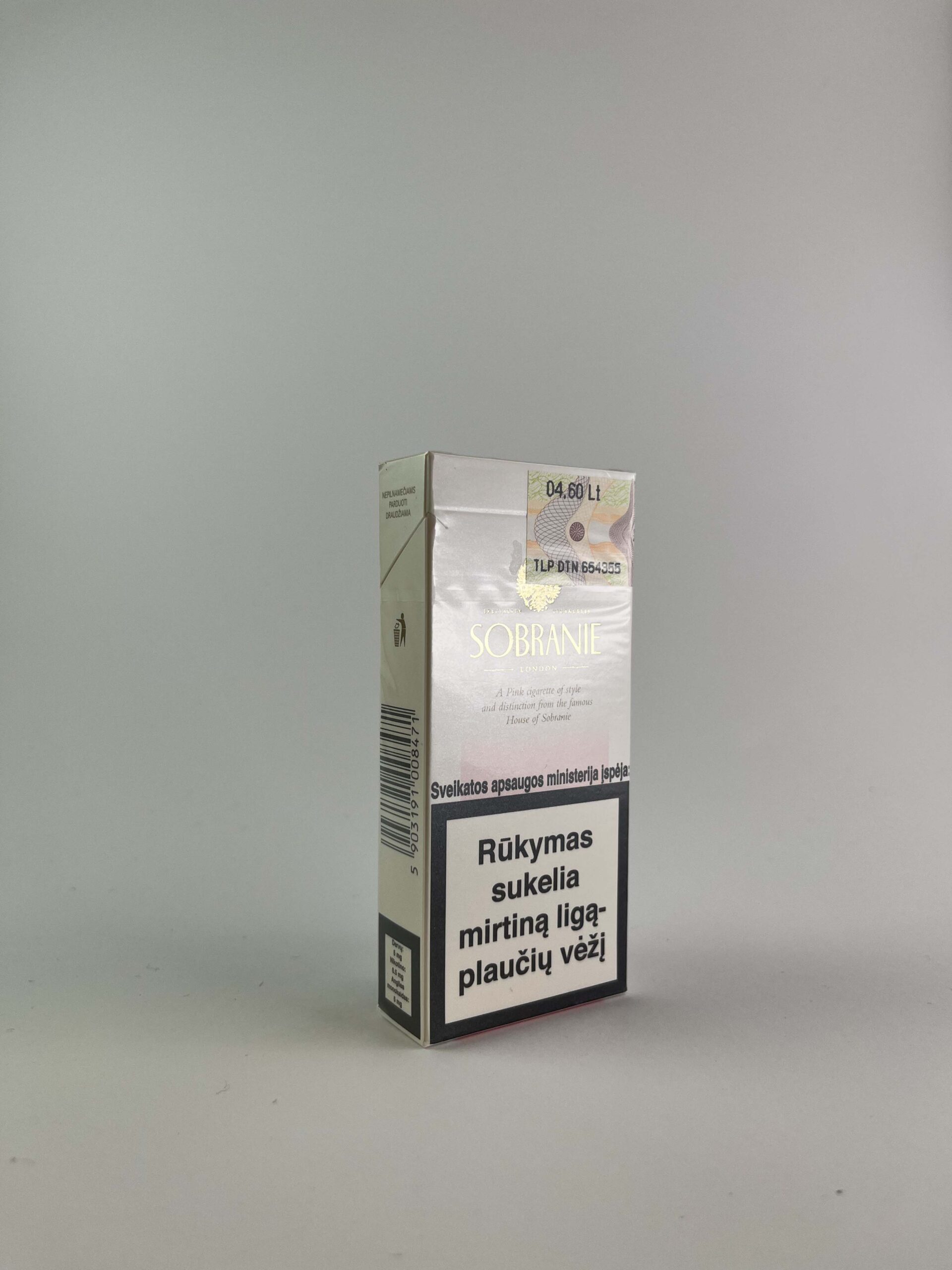 Description: This pack of Sobranie Pink cigarettes features an elegant, soft shade of pink that exudes a sense of luxury. The Sobranie brand is known for its exclusive cigarettes, and this pack is especially designed for the consumer who seeks elegance. The brand and a warning about the dangers of smoking are clearly visible at the top of the pack, which meets modern health protection requirements.