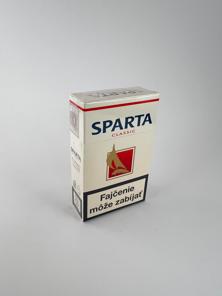 Unopened, packaged "Sparta Classic" package - white background color with red symbolic logo (wind-shaped sign). Hard package (flip-top), presented in the current "new design" typical of Eastern Europe. Condition is very good - the film is intact, without damage.