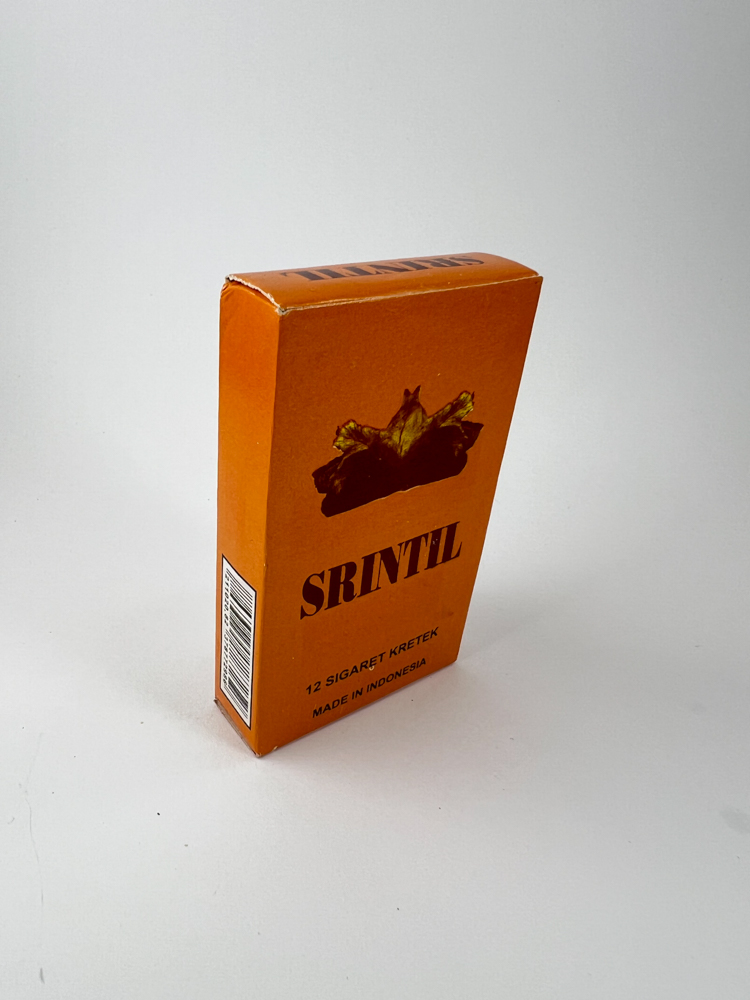 Srintil – tai tradicinės indonezietiškos kretek cigaretės. Pakelis ryškiai oranžinės spalvos, priekyje pavaizduotas tabako lapų pluoštas, viršuje ir apačioje užrašas „12 sigaret kretek“. Pavadinimas „Srintil“ pateiktas stambiu šriftu. Ant nugarinės pusės įrėmintame lauke pateiktas aprašymas apie gaminį, pabrėžiantis, kad tai kruopščiai atrinktų tabako ir gvazdikėlių mišinys. Šone nurodyta gamintojo vietovė – Pati, Indonezija. Ant nugarinės pusės taip pat yra standartinis įspėjimas apie rūkymo žalą sveikatai.