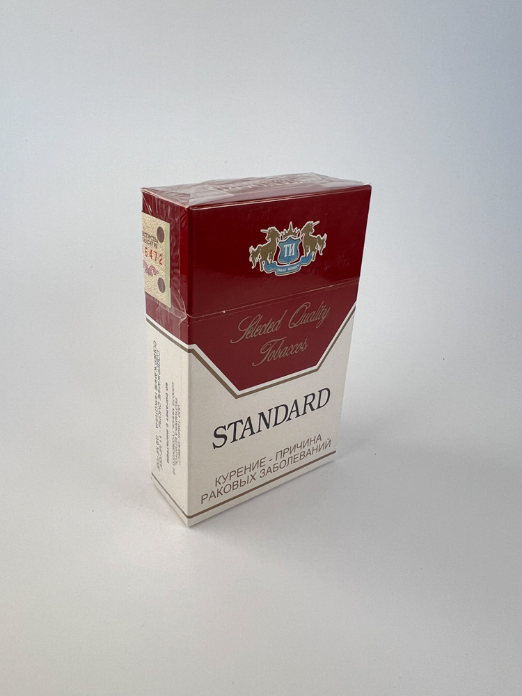Historical data and popularity: STANDARD was not widely exported, being more common in regional markets in Russia. Such packets may be of interest to collectors due to their design, which reflects the aesthetics of the Russian tobacco industry of the late 20th century - early 21st century.