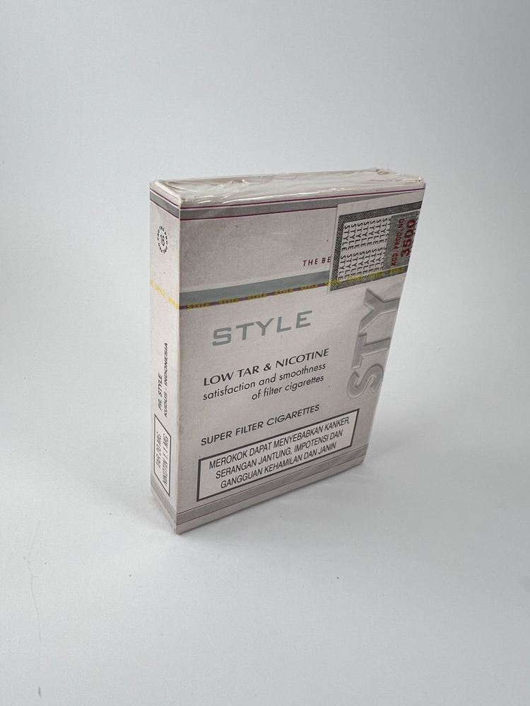 „Style“ – indonezietiškas cigarečių prekės ženklas, orientuotas į „low tar & nicotine“ segmentą. Ant pakelio pabrėžiama, jog tai „Super Filter Cigarettes“. Dizainas minimalistinis, šviesiai pilkos spalvos su violetinėmis detalėmis. Priekinėje pusėje išryškintas pavadinimas „STYLE“, šone nurodyta kilmė – „Made in Indonesia“. Viršuje užklijuotas akcizo ženklas su 500 rupijų nominalu. Galinėje pusėje pateiktas sveikatos įspėjimas indoneziečių kalba. Pakelis originaliai užklijuotas, su celofanine apsauga.