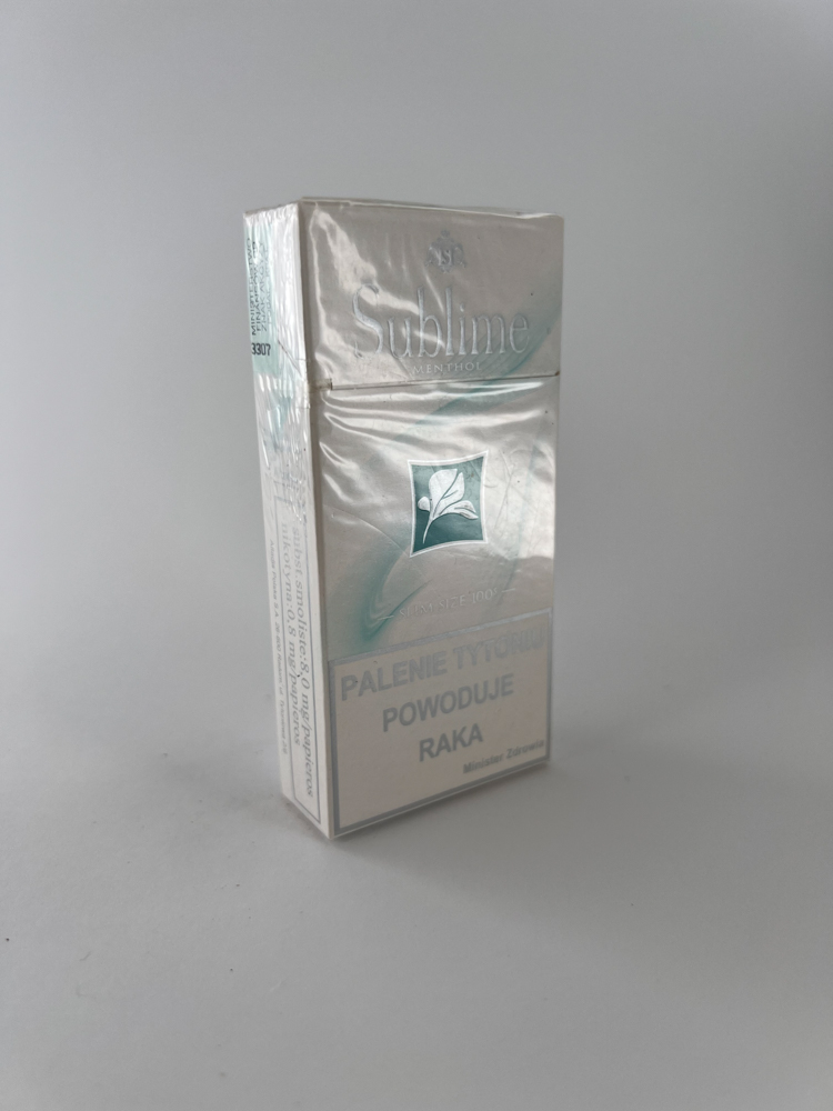 Historical data and popularity: „Sublime is not a widespread or commercially strong brand, but the menthol type and 100mm format make it a sought-after pack among collectors, especially after the ban on menthol cigarettes in the EU.