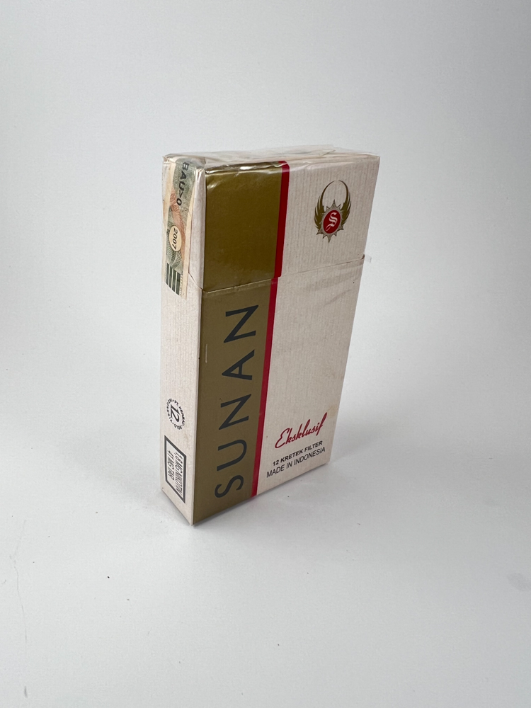 „Sunan Eksklusif“ – tai indonezietiškos kretek (su gvazdikėliais) cigaretės su filtru. Pakelio dizainas elegantiškas, derinantis baltą ir aukso spalvas su ryškia raudona linija per centrą. Viršuje matomas logotipas – raudona „S“ raidė aukso fone. Ant nugarinės pusės pateiktas aprašymas indoneziečių kalba, pabrėžiantis tabako ir gvazdikėlių derinį bei turtingą skonį. Apatinėje dalyje užrašytas sveikatos įspėjimas. Šone aiškiai matomas akcizo ženklas „2007“, nurodantis gamybos laikotarpį.