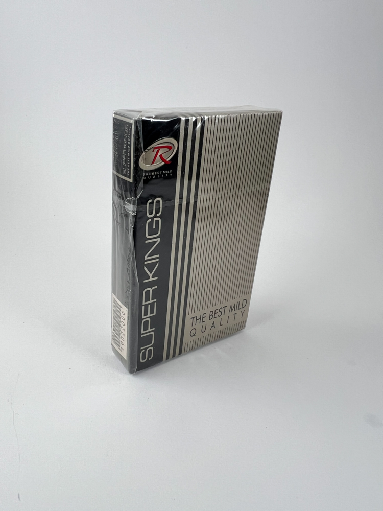 Pilkos ir juodos spalvos pakelis su vertikaliomis linijomis ir minimalistiniu dizainu. Ant priekinės pusės išryškintas pavadinimas „Super Kings“ bei užrašas „The Best Mild Quality“. Viršuje yra logotipas su raide „R“ apskritime. Šoninėse pusėse pateikti nikotino ir dervų kiekiai bei gamintojo informacija. Galinėje pusėje dominuoja vertikalios linijos ir pakartotas pavadinimas „Super Kings“. Apatinėje dalyje įspėjimas apie rūkymo žalą indonezų kalba. Pakelis neatidarytas, celofanuotas, be pažeidimų.