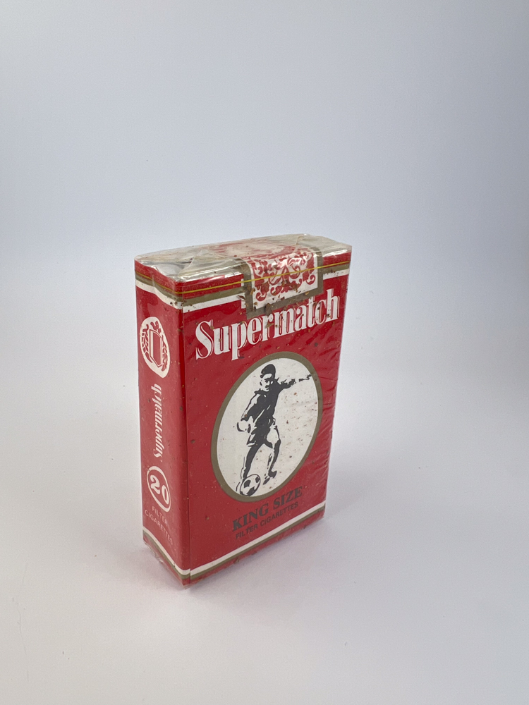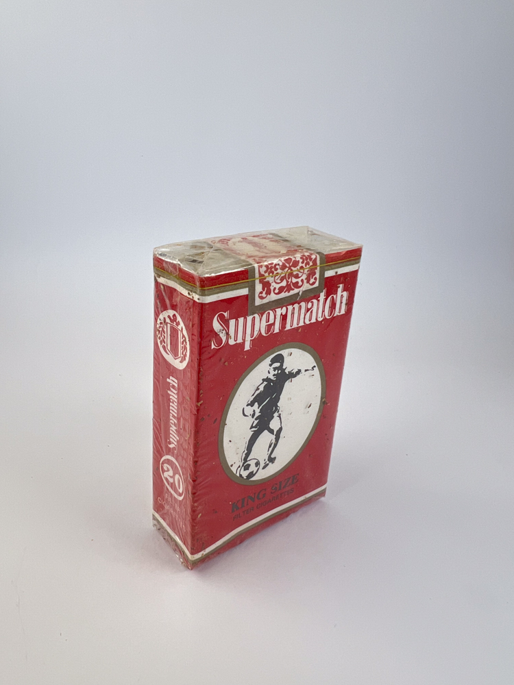 „Supermatch“ – one of the most famous West African cigarette brands, produced Nigerian Tobacco Company Ltd., owned by British American Tobacco (BAT). This particular King Size Filter The package from Nigeria has a classic design, with a bright red background and a white silhouette of a football player in the center – a clear reference to the sporty image with which the brand sought to attract young consumers.