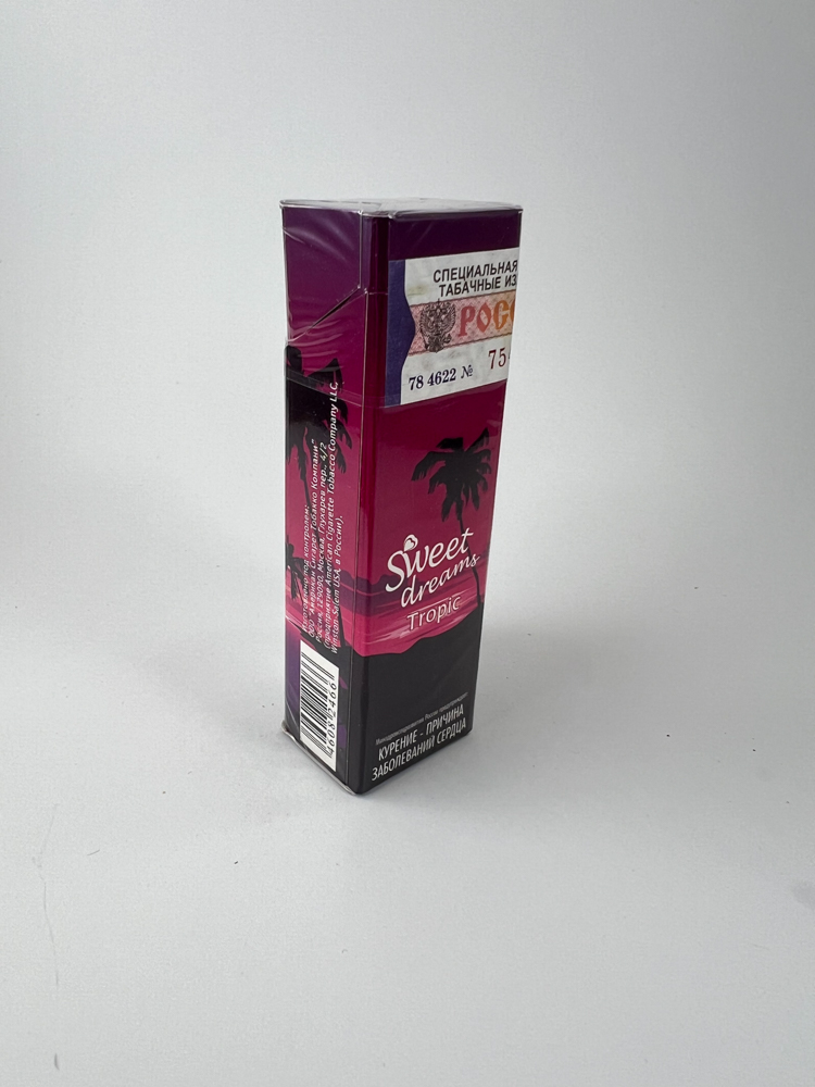 Historical data and popularity: Sweet Dreams Tropic was one of several different themed editions produced for the Russian market. Their sales were limited, and the unique packaging designs became sought after among collectors of design and flavoured cigarettes.