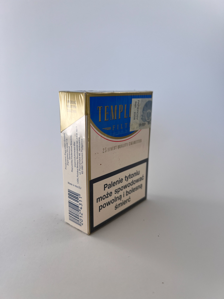 Templeton Filter – tai mažai žinomas cigarečių prekės ženklas, kurio pakelis pasižymi mėlynos ir aukso spalvos deriniu. Priekinėje pusėje pateiktas užrašas „25 Finest Quality Cigarettes“, kuris sufleruoja bandymą pozicionuoti produktą kaip aukštesnės kokybės. Ant pakelio matyti lenkų kalba pateikti įspėjimai („Palenie zabija“ ir „Palenie tytoniu może spowodować powolną i bolesną śmierć“) – tai rodo, kad pakelis buvo skirtas Lenkijos rinkai. Pakuotė užklijuota oficialiu akciziniu ženklu.