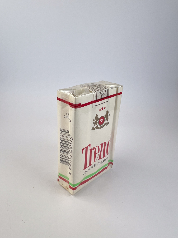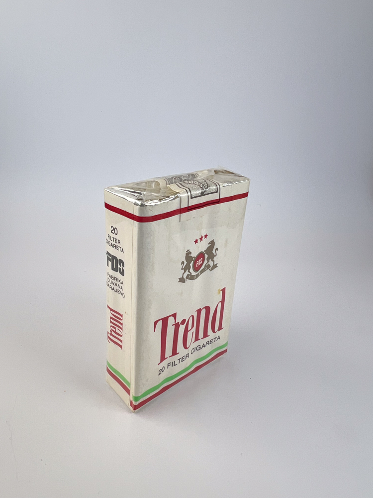 „Trend Filter Cigarette“ – a Yugoslav cigarette brand, produced Sarajevo Tobacco Factory (FDS) – one of the oldest and most famous tobacco factories in the Balkan region. This model belonged to the middle class segment, and the name Trend reflects the influence of 1980s and 1990s modernity and Western lifestyle, which the manufacturers sought to convey through both design and name.