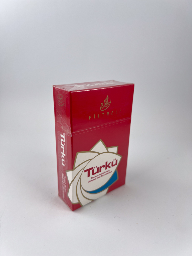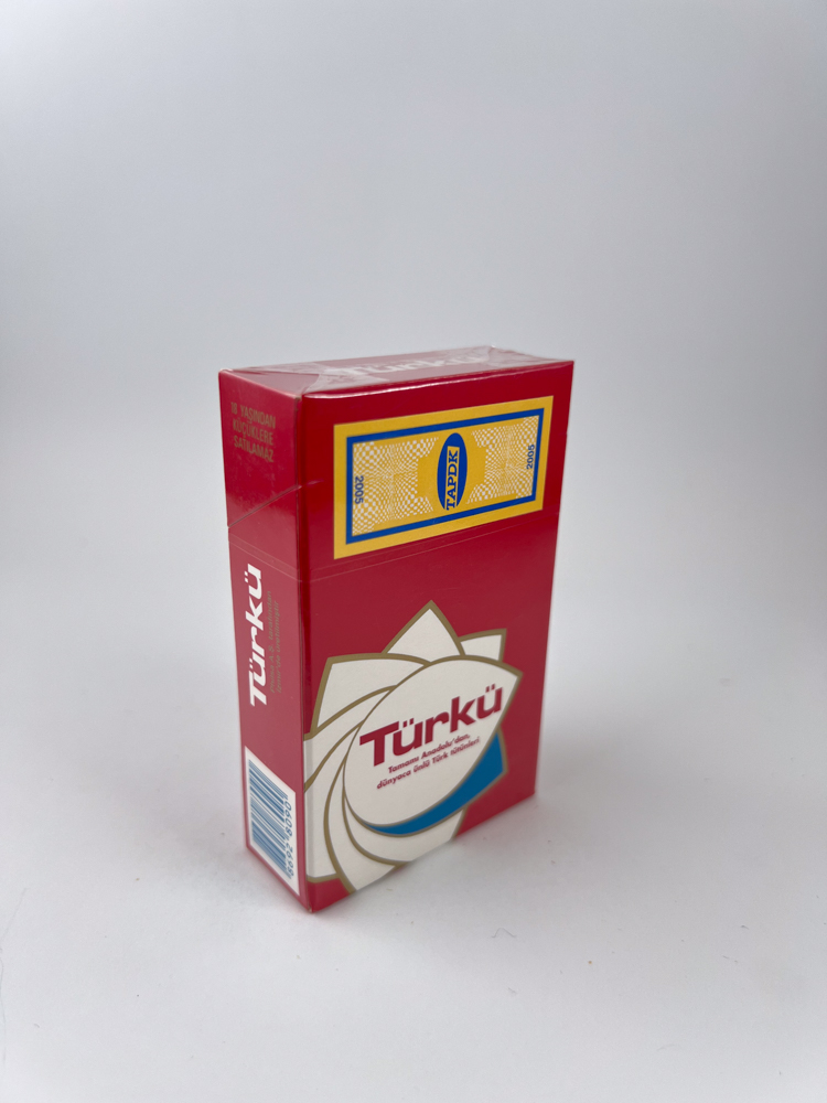 Brightly raudonos spalvos pakelis išsiskiria moderniu, bet tautiniu dizainu. Centre matoma baltai auksinė gėlės formos emblema, primenanti tradicinį turkišką ornamentą. Viduryje – užrašas „Türkü“, reiškiantis „liaudies daina“, pabrėžiantis tautinį identitetą. Po logotipu – frazė “Tamamen yerli tütünlerden, dünyanın en iyi Türk sigarası” („Pagaminta iš visiškai vietinio tabako – geriausios turkiškos cigaretės pasaulyje“).