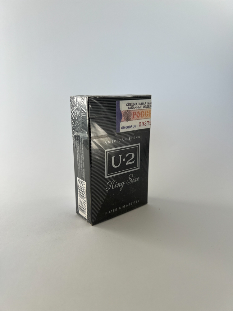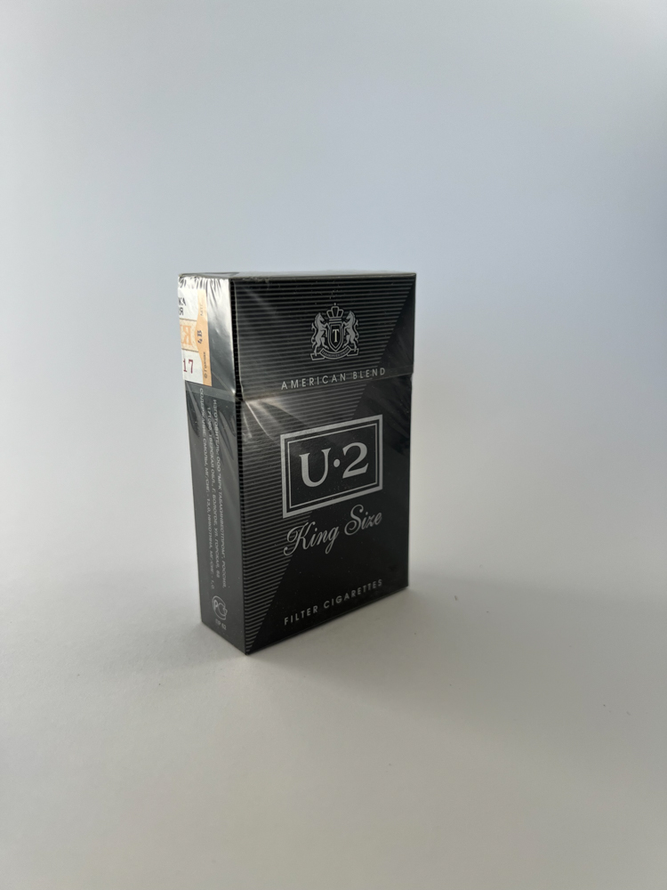 „U·2 King Size“ – modernios ir minimalistinės estetikos cigarečių pakelis, išlaikantis griežtą juodą spalvinę paletę su subtiliomis sidabrinėmis linijomis. Viršuje matomas herbas su karūna ir užrašu „American Blend“, o centre – prekinis ženklas „U·2“ su užrašu „King Size“. Vizualiai šis pakelis primena vakarietišką stilių, tačiau rusų akcizo ženklas ir įspėjimas apie rūkymo žalą rodo, kad jis buvo skirtas vidaus rinkai. Pakelis yra idealiai išsaugotas, su originalia plėvele ir nepažeistu akcizo lipduku.