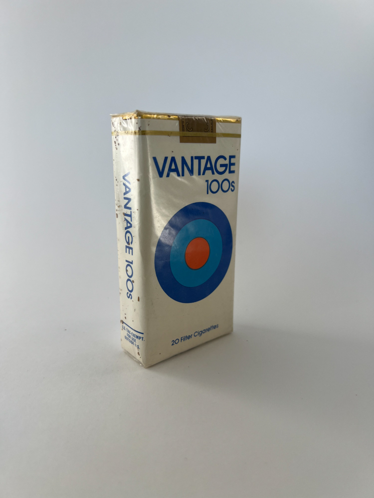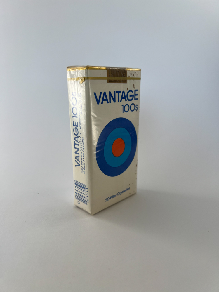 „Vantage 100's is a classic example of the American tobacco industry, owned by the RJ Reynolds Tobacco Company. The packaging is instantly recognizable for its minimalist and purposeful design - concentrated colored circles, symbolizing purpose and innovation, were Vantage's trademark.