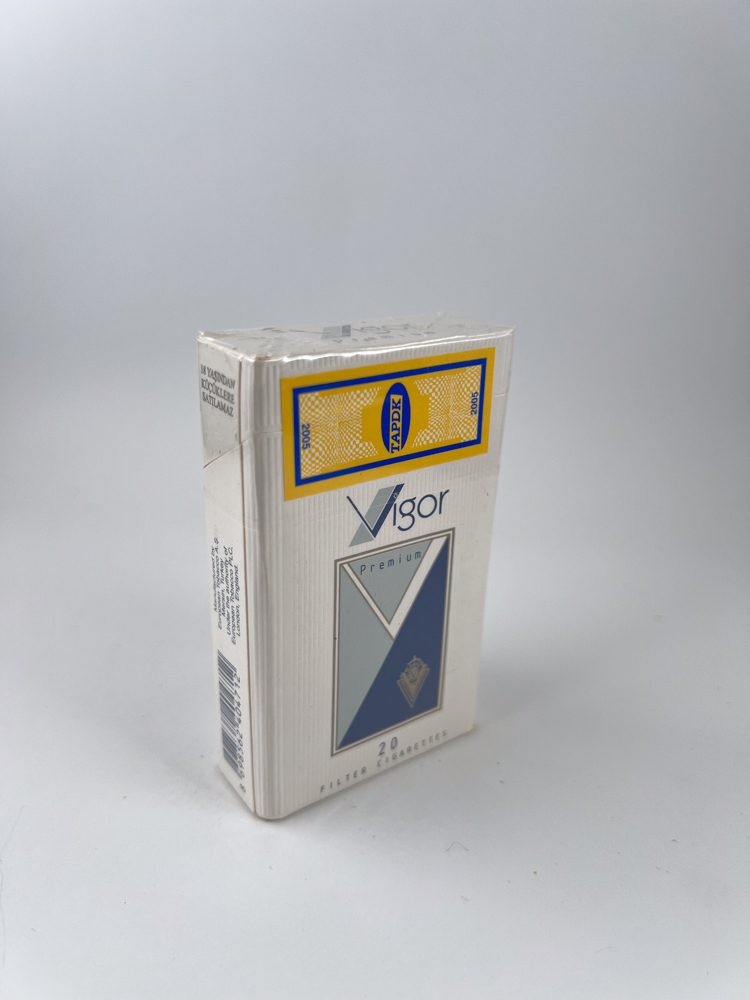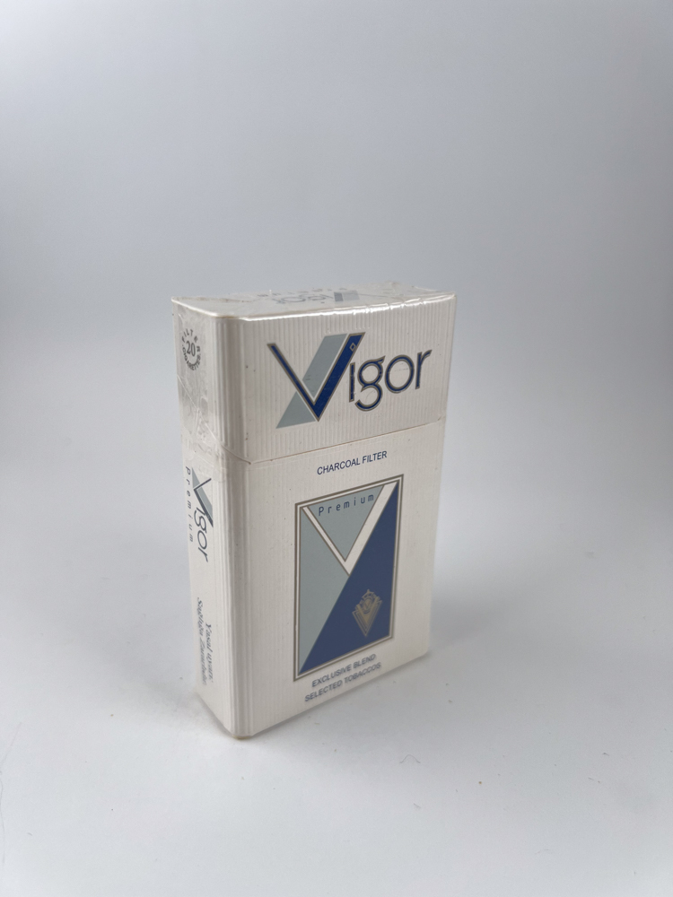 „Vigor Premium“ – tai Turkijos gamybos cigarečių pakelis, pasižymintis švariu, minimalistiniu dizainu ir techniniu užrašu “Charcoal Filter”, kuris reiškia, kad cigaretės turėjo anglies filtrą – retą sprendimą to meto vietinėje rinkoje.