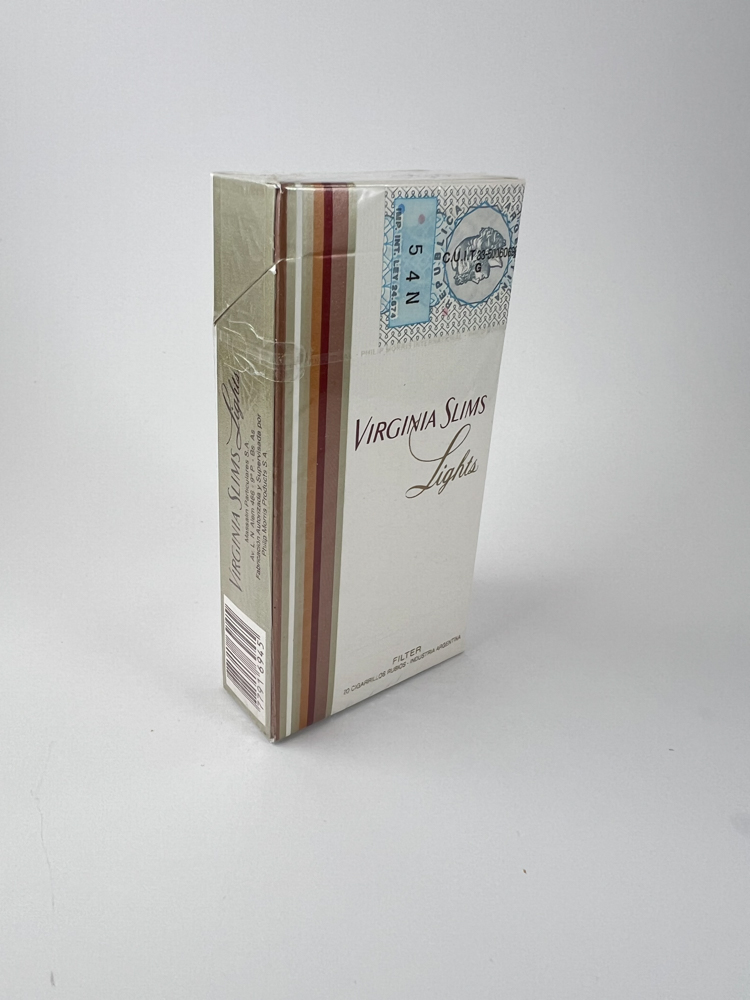 Collectible value: Average. Although Virginia Slims is a widely known brand, this design with unique color bands is not very common, and the regional edition (Argentina) with an authentic excise stamp increases its appeal to collectors, especially in women's cigarette collections.