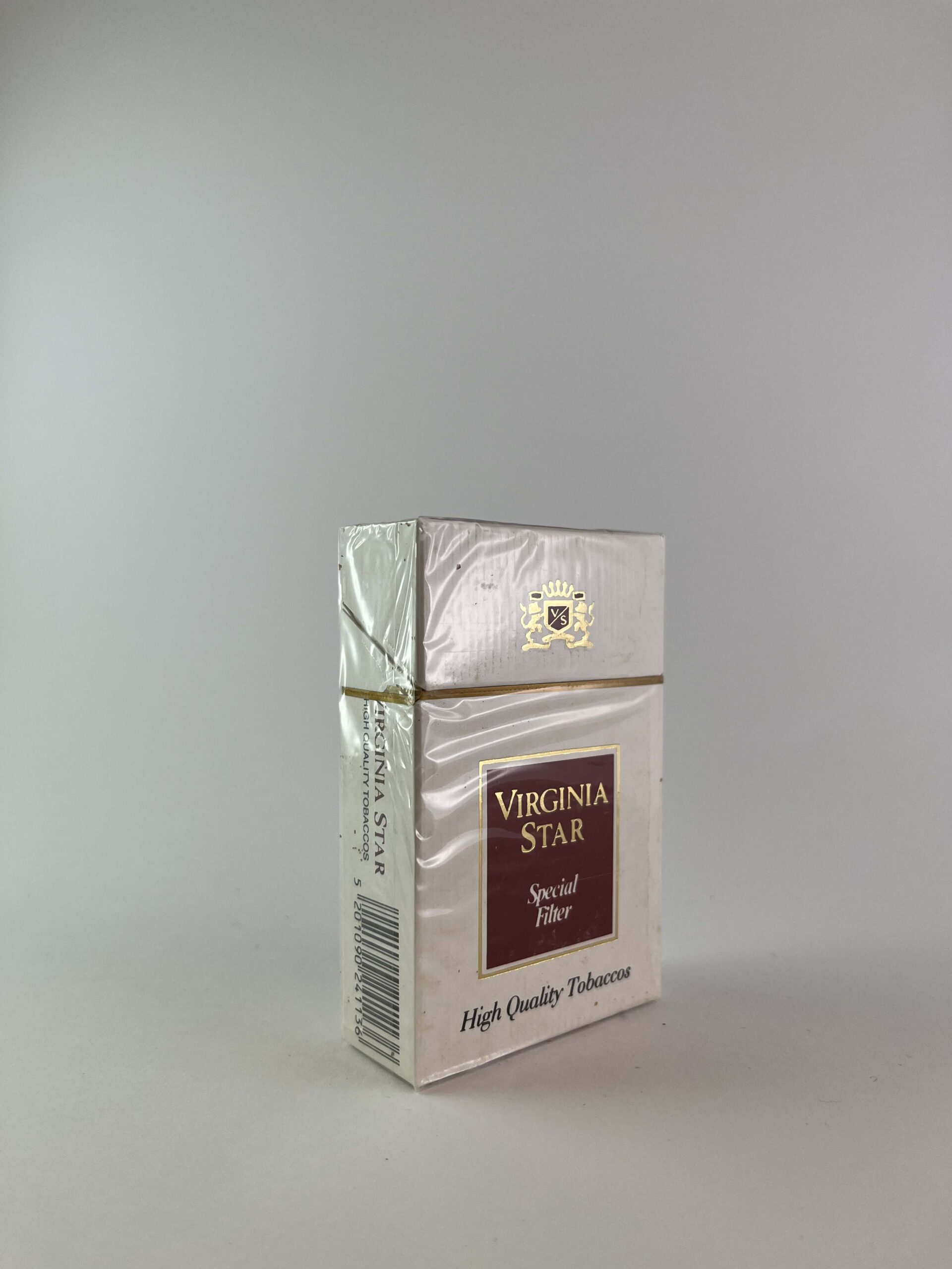 Description: This pack of Virginia Star cigarettes is distinguished by its delicate and sophisticated design, which is dominated by a light-toned base and dark red details. The packaging is adorned with inscriptions that emphasize the high quality and luxury of the tobacco. The manufacturer declares the „Special Filter” feature in order to distinguish this product from others. Warnings about the harm of smoking are noticeable, as required by health regulations.