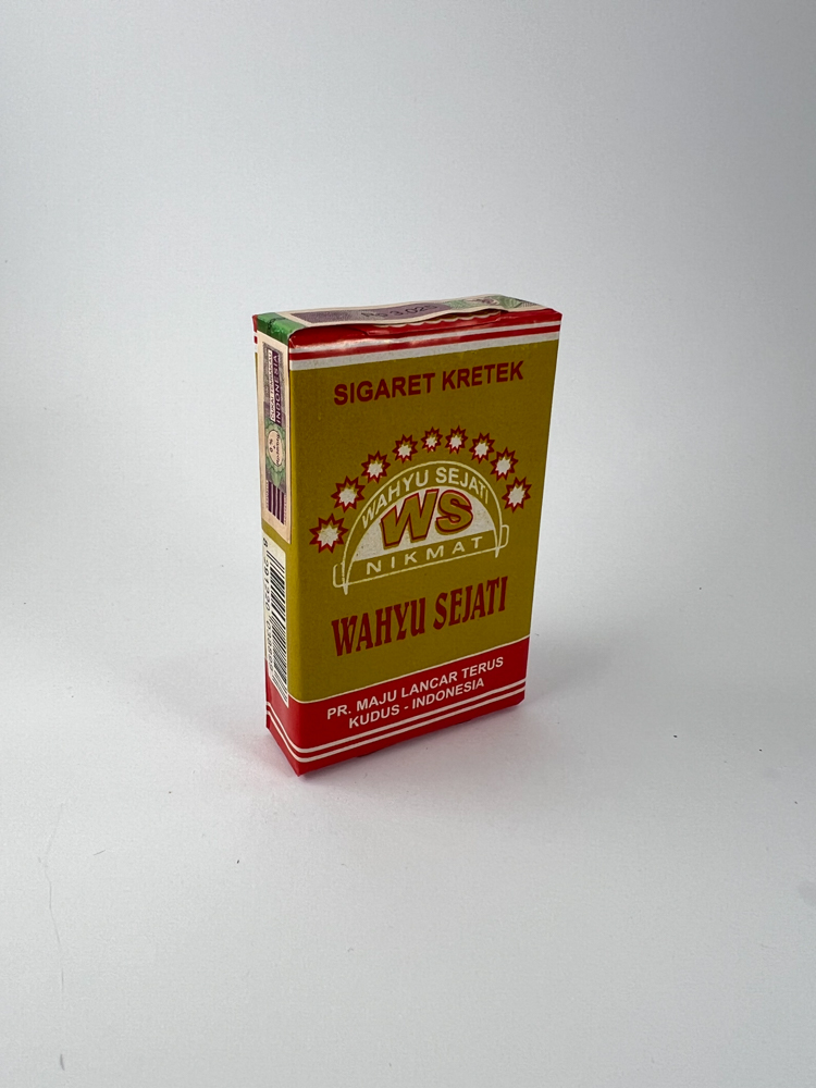 „Wahyu Sejati“ – tai kretek cigarečių pakelis, pagamintas Indonezijoje, Kudus mieste. Dizainas tradicinis – dominuoja gelsvai ruda ir raudona spalvos, centre logotipas „WS Nikmat“, o viršuje nurodyta „Sigaret Kretek“. Ant nugarėlės pateiktas aprašymas apie aukštos kokybės tabako, gvazdikėlių ir specialaus padažo mišinį, suteikiantį išskirtinį skonį. Pakuotėje nurodyta, kad joje yra 12 vienetų, o apačioje pateiktas įprastas sveikatos įspėjimas indoneziečių kalba. Matomas ir oficialus akcizo ženklas.
