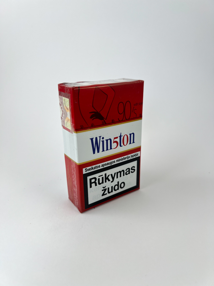 Description: Tai stilizuota Winston cigarečių versija – „Win5ton“, skirta pabrėžti dizainą, susijusį su 90-aisiais. Viršutinėje dalyje raudonas fonas su grafiniu „90’s with style“ užrašu, žemiau klasikinis Winston logotipas su pakeistu skaičiumi „5“, kuris pakeičia „s“ raidę. Priekyje ryškus įspėjimas lietuvių kalba „Rūkymas žudo“, o gale – „Rūkaliai miršta anksčiau“. Ant pakelio yra akcizo ženklas su kaina 3.75 Lt, kas dar labiau lokalizuoja pakelį Lietuvoje iki 2015 m.