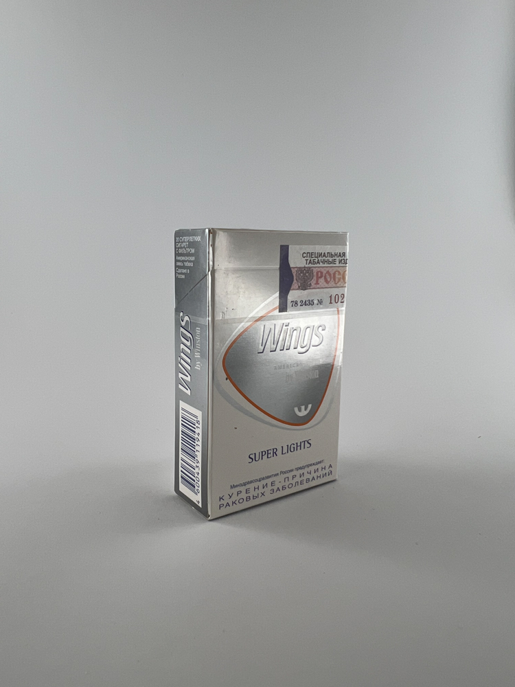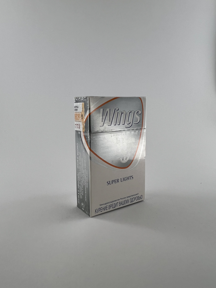 Wings Super Lights is a mild-tasting version of cigarettes produced for the Russian market. The pack has a modern, silver-metallic design with an orange line accent, which visually distinguishes it from the standard releases. A prominent Russian excise label testifies to legal trade in Russia at the time. The Wings brand was owned by Liggett Ducat or operated as their import product, and its design and name are oriented towards American-style associations. Although this brand was not very widely known outside the former CIS, this makes it an interesting object for collectors, especially those who collect lesser-known or extinct tobacco brands.