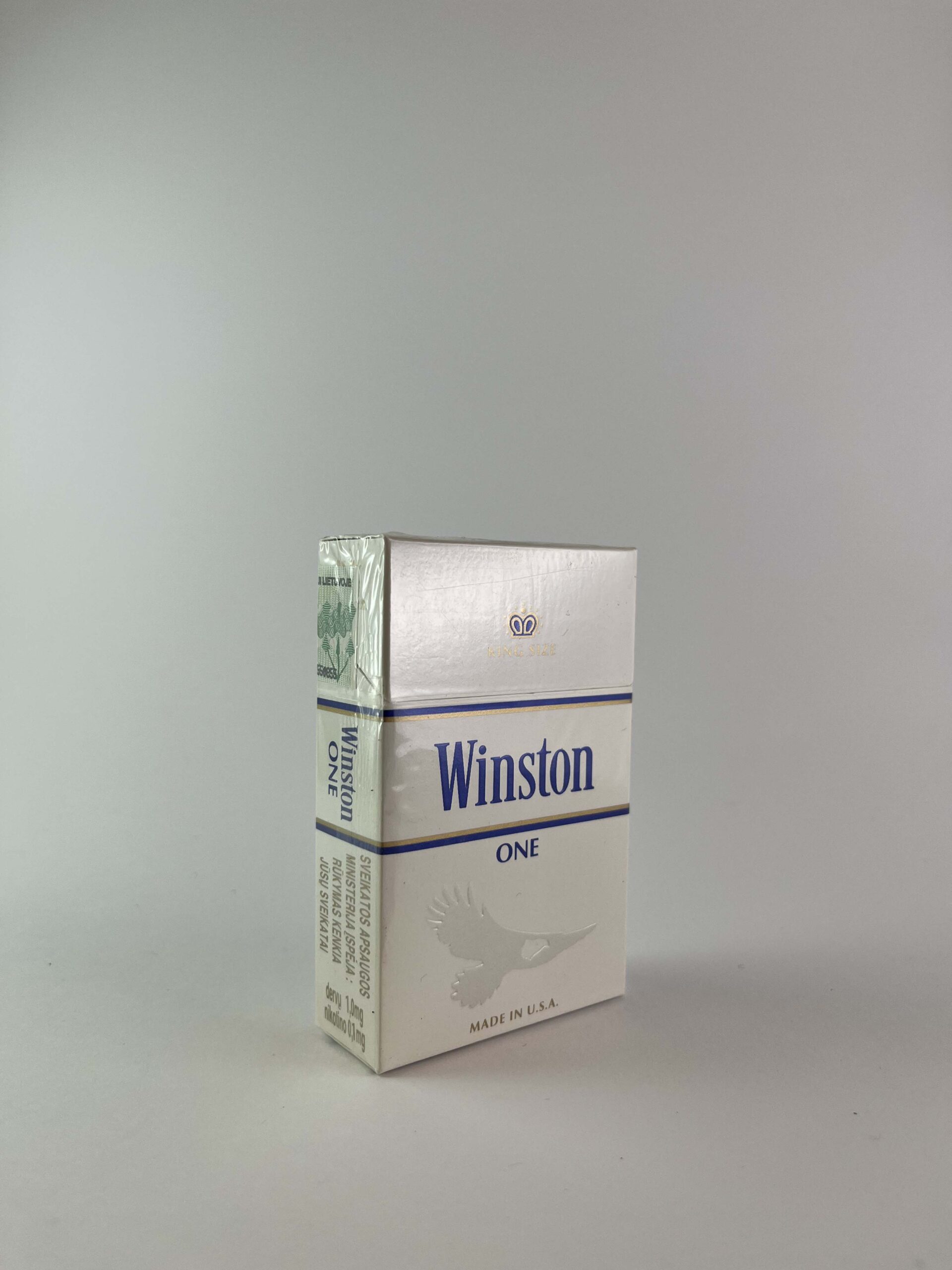 Description: This Winston One cigarette pack has a minimalist and elegant design, in white with a blue accent. The design of the pack conveys lightness and purity, while the One name emphasizes very light cigarettes. The Winston brand is well known for its quality and long history. The health warning about the dangers of smoking is clearly presented to highlight the health risks.