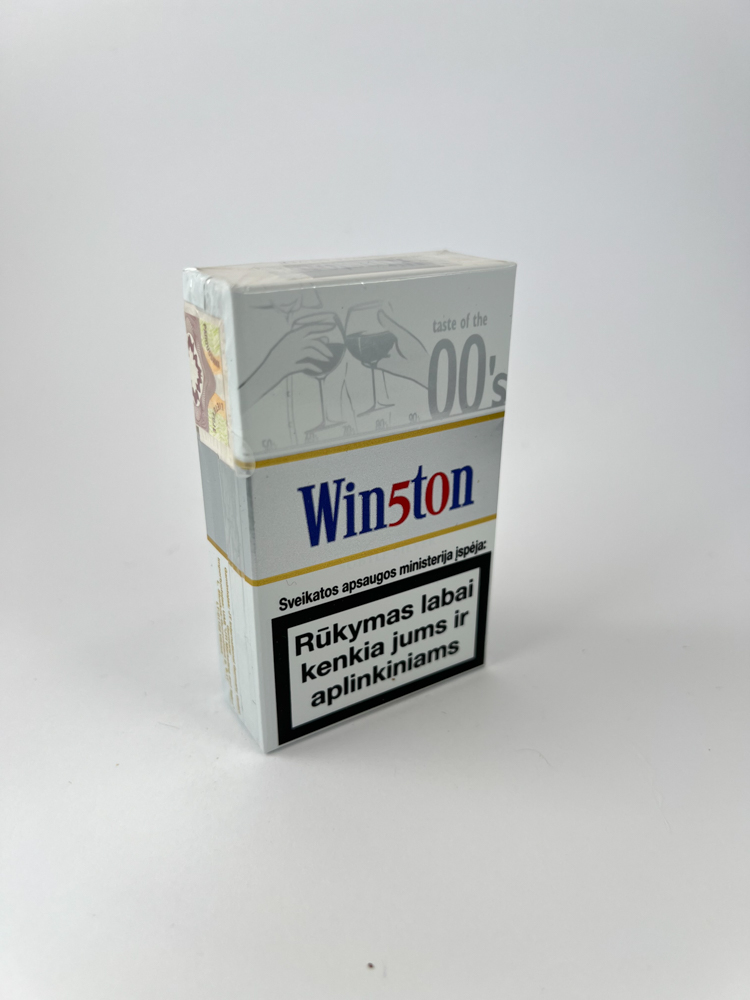 Šis Winston cigarečių pakelis priklauso specialiajai teminei dizaino serijai „Taste of the 00’s“, dedikuotai 2000-ųjų metų nuotaikai. Pakelis pasižymi šviesiai pilka spalva ir stilizuotu grafiniu elementu su dviem rankomis, laikančiomis vyno taures – simbolizuojančiu šio laikmečio socialinį stilių. Logotipas „Win5ton“ išlaikytas su skaitmeniu „5“, o tai būdinga specialiosios serijos leidimams. Akcizo ženklas nurodo kainą 3,75 Lt, o įspėjimai pateikti lietuvių kalba, kas aiškiai rodo pakelio orientaciją į Lietuvos rinką.