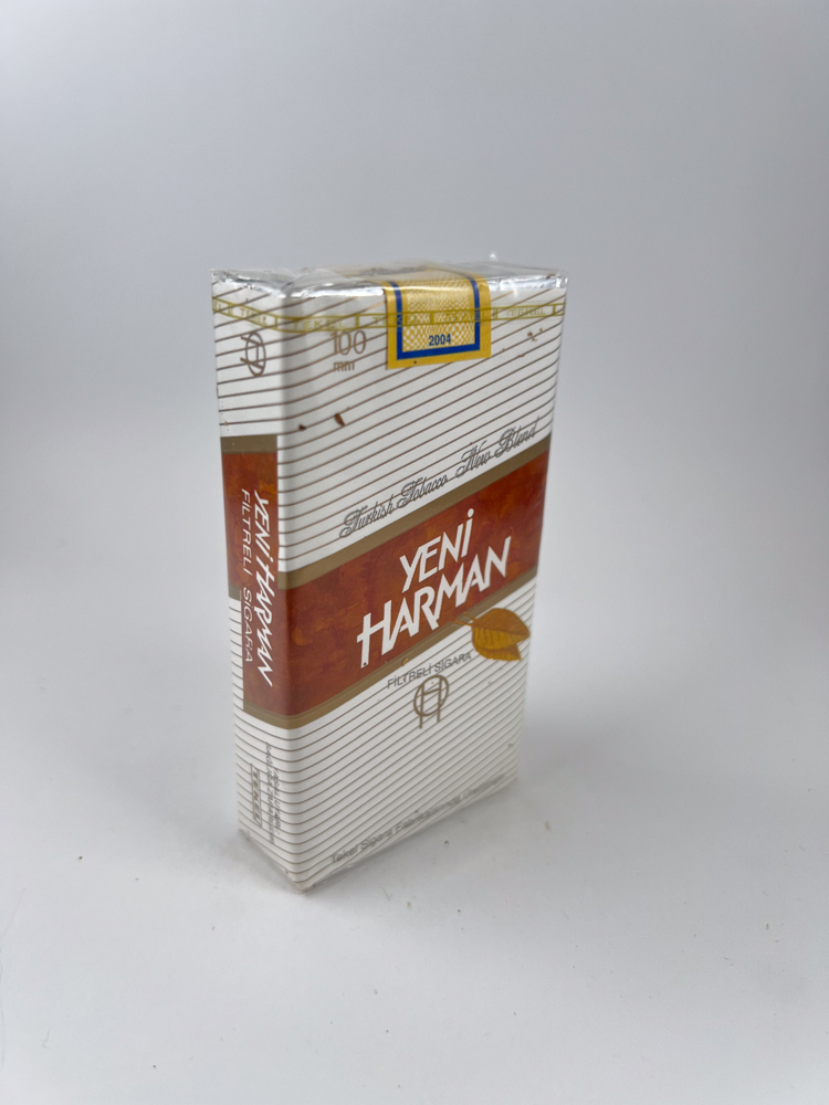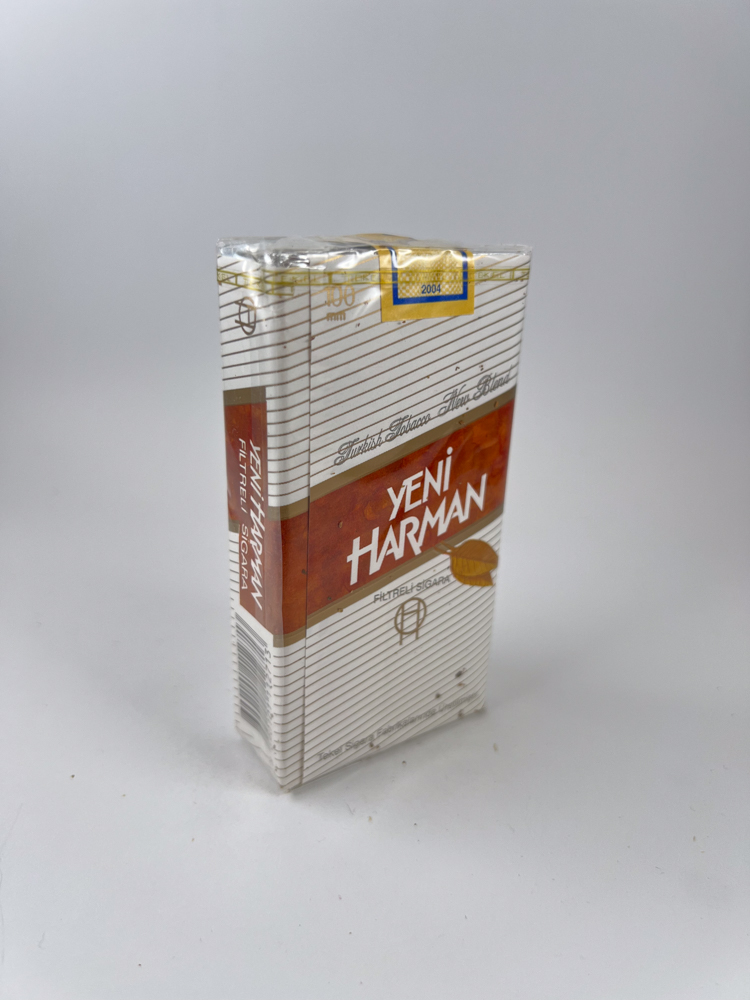 Šviesiai smėlinės spalvos pakelis su horizontaliomis aukso linijomis ir centriniu tamsiai rudos spalvos lauku, kuriame baltomis raidėmis užrašyta Yeni Harman („Naujas mišinys“). Po užrašu – stilingas tabako lapo simbolis, pabrėžiantis gaminio natūralumą. Pakelio viršuje nurodyta frazė Turkish Tobacco Flavor Blend, išryškinanti vietinės kilmės tabako mišinį.