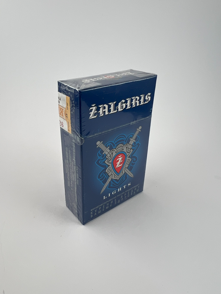 „Žalgiris Lights“ cigarečių pakelis pasižymi išskirtiniu viduramžių riterių įkvėptu dizainu – pagrindiniame fone vaizduojamas raudonas herbas su baltąja „Z“ raide ir dviem sukryžiuotais kalavijais. Tamsiai mėlynas fonas perteikia solidumą ir galią. Pakelio viršuje baltomis gotikinio šrifto raidėmis išrašytas „ŽALGIRIS“ pavadinimas, aliuzija į Žalgirio mūšį, kuris turi stiprų istorinį ir patriotinį atspalvį Lietuvos kultūroje. Ant pakelio yra rusiškas akcizo ženklas, nurodantis eksportą į Rusijos rinką. Apatinėje dalyje pateikti įspėjimai rusų kalba, o šonuose – informacija apie gamintoją ir kiekį.